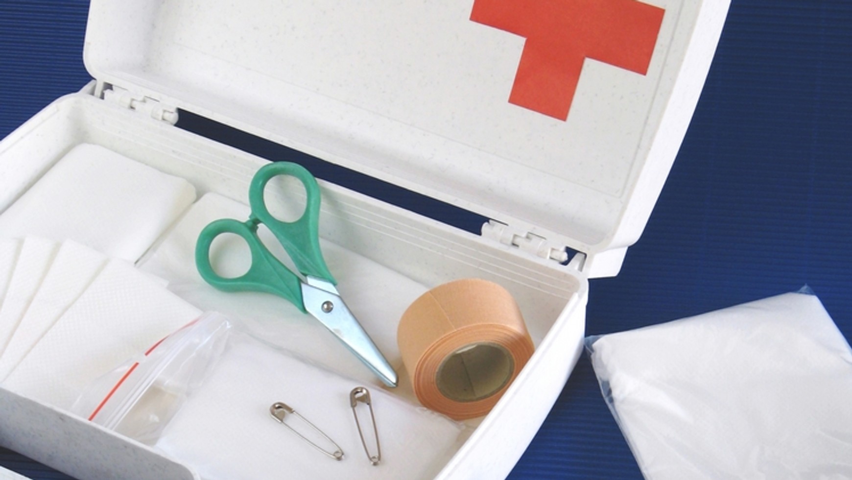 Apteczka w pierwszej kolejności powinna zawierać środki opatrunkowe. Podczas opatrywania drobnych ran, otwartych złamań i poparzeń niezbędne okażą się kompresy jałowe i gazy jałowe oraz bandaż lub plaster na rolce. Zabezpieczenie niewielkich uszkodzeń skóry wymaga zastosowania plastra z opatrunkiem. W przypadku dostania się ciała obcego do oka niezastąpiony będzie opatrunek indywidualny, a chusta trójkątna umożliwi ustabilizowanie kończyny górnej w razie złamania. Bandaż elastyczny teoretycznie nie jest niezbędny, jednak ponieważ jego cena jest niska i nie zajmuje on dużo miejsca, warto wyposażyć apteczkę także i w niego.