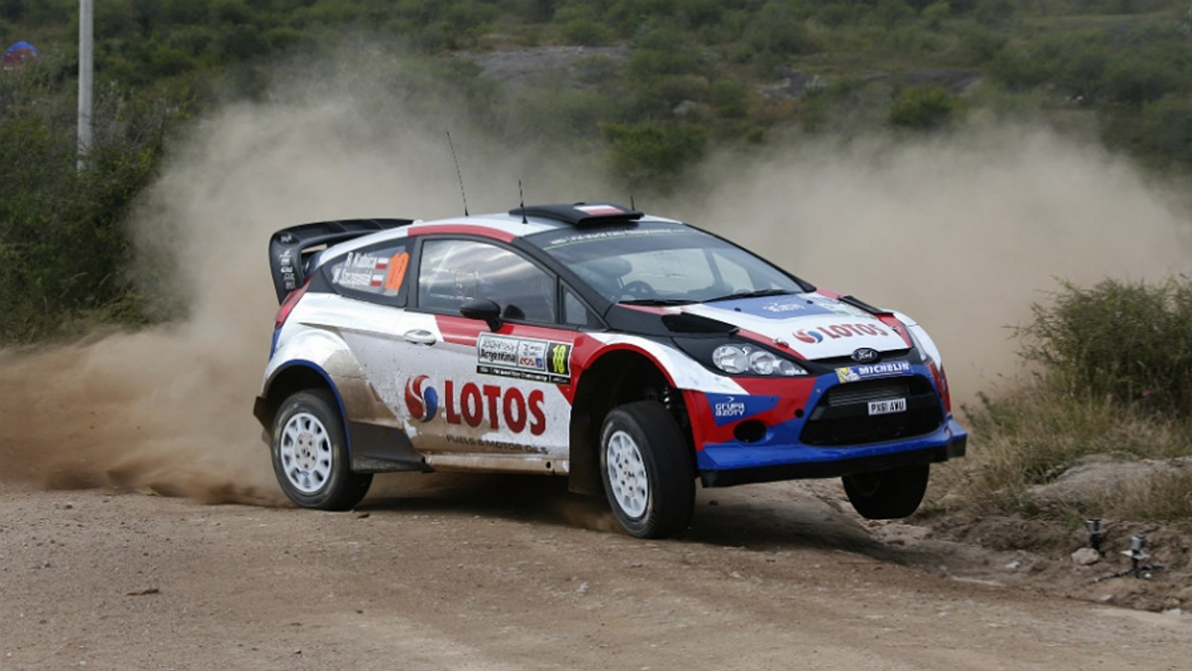 Polska załoga jedzie samochodem Ford Fiesta RS WRC.