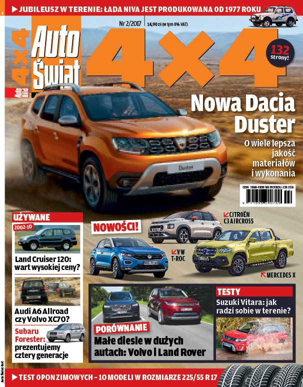 W najnowszym wydaniu magazynu „Auto Świat 4x4” piszemy o drugiej generacji Dacii Duster oraz o Mercedesie opracowanym na bazie pikapa Navara. Z niecierpliwością czekamy także na debiut nowego Suzuki Jimny oraz Jeepa Wranglera.