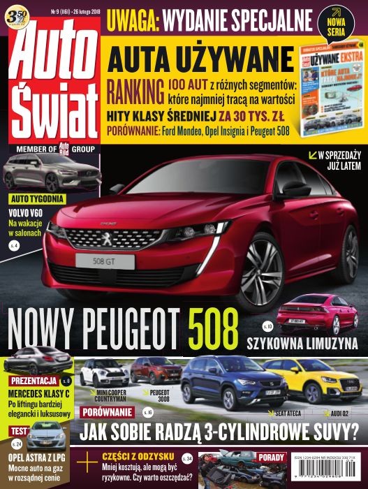 Najnowsze wydanie tygodnika „Auto Świat” 9/2018 z 16-stronicowym dodatkiem „Samochody używane” w sprzedaży od 26 lutego 2018 r.