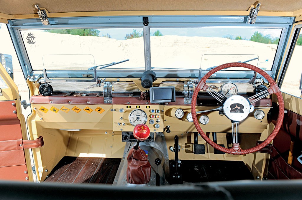 Prostota i oszczędność wyrazu charakterystyczna dla stylu Land Rovera serii II. Całość uszlachetniona wieloma detalami. Podłoga ze szlachetnego drewna, piłka do krykieta jako gałka zmiany biegów. Skrzynia biegów z Defendera.
