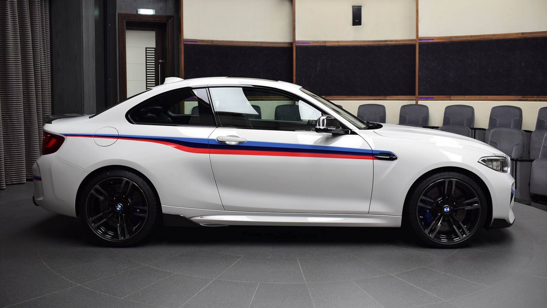 Pakiet M Performance w jeszcze wyraźniejszy sposób podkreśla sportowy charakter gamy BMW. Można zamówić go prawie do każdego modelu, także tych z plakietką M. W jednym z salonów w Abu Dhabi zaparkowało białe M2 z takim właśnie pakietem.