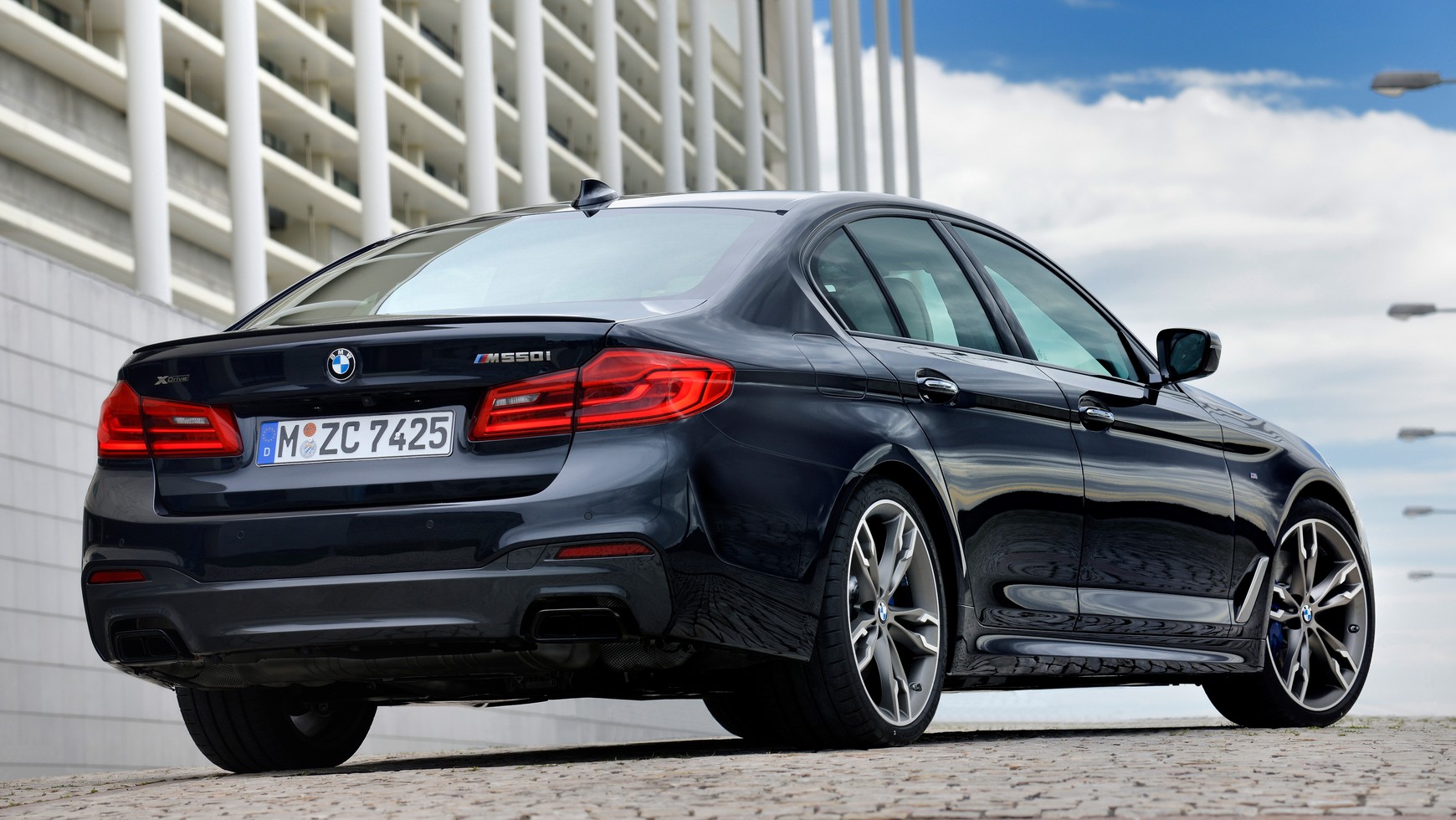 Oczywiście na tak skuteczne przyspieszenie M550i pozwala napęd na 4 koła. Przypomnijmy, że obecne wcielenie M5 ma, jako jedyne w klasie najmocniejszych sedanów, napęd wyłącznie na tylne koła.