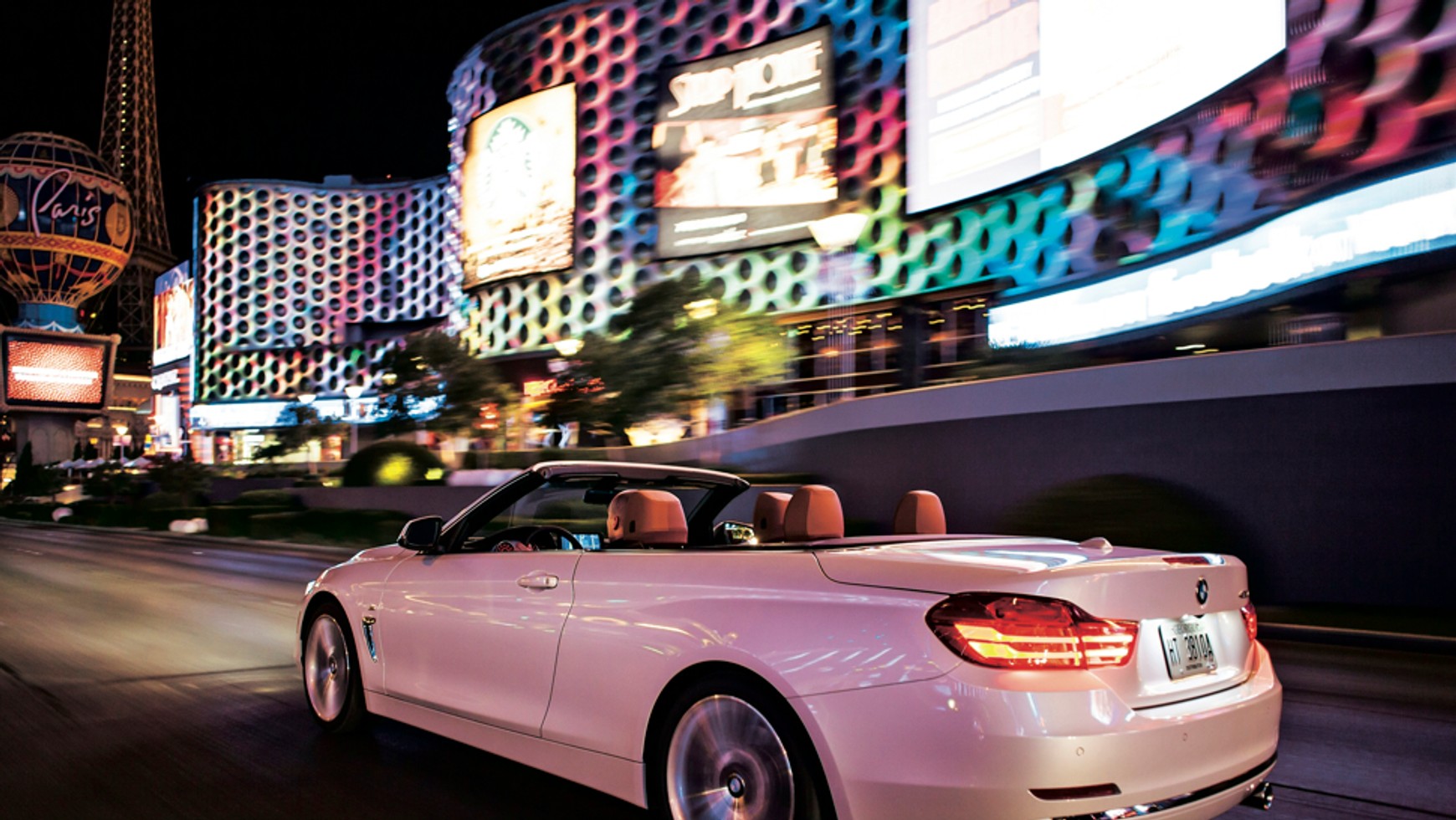 Tymczasem w BMW pełen komfort. Przez otwarty dach do kabiny wpada feeria kolorowych świateł, neony pięknie mienią się w perłowym lakierze auta. Kabriolet wydaje się wręcz stworzony do tego miejsca. Tutaj mieszkają chyba najbardziej wyluzowani obywatele USA, którzy lubią się pokazywać na mieściew samochodach marki BMW.