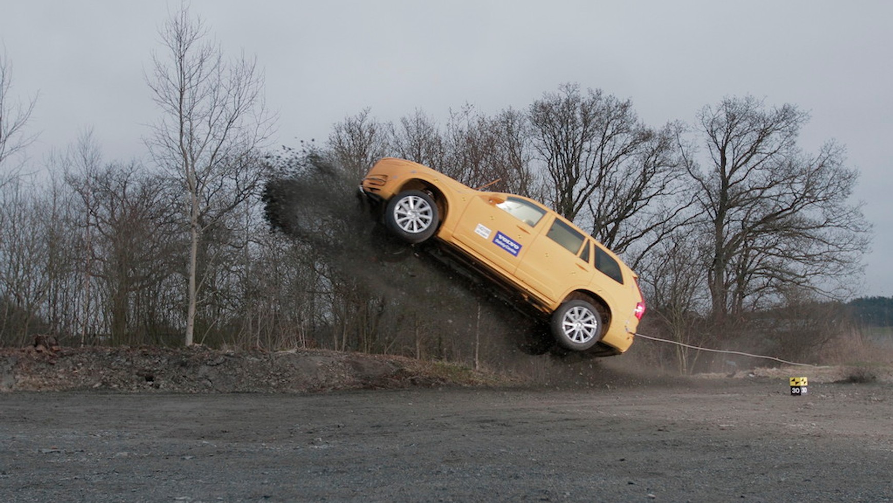 Po odbiciu od krańca rowu Volvo XC90 zostaje mocno wybite do góry