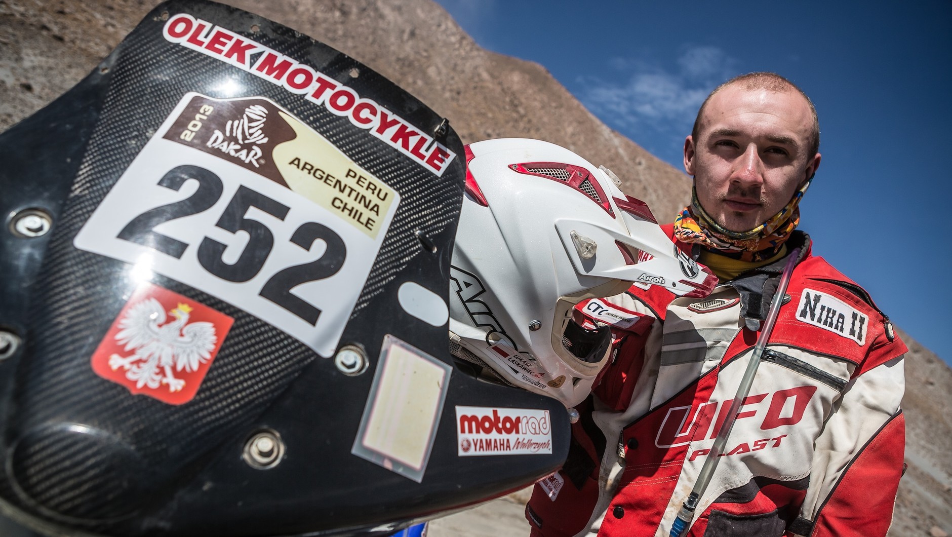 Jakub Przygoński: "Na 35km wpadł mi kamień w zacisk i przedni hamulec nie hamował. Wjechałem w drut kolczasty i się w niego zaplątałem. Jak się wywróciłem to od razu wstałem, zdemontowałem chłodnicę oleju i spiąłem obieg na krótko. Na szczęście nie zgubiłem dużo oleju i wciąż miał ciśnienie. Próbowałem nadrobić stratę, ale tak się kurzyło, że przez 100km starałem się wyprzedzić quada, ale on mnie nie widział i nie puszczał. Na jutro musimy przykleić nową wlepę, ponieważ poważnie się uszkodziła podczas upadku, no i lecimy dalej!”