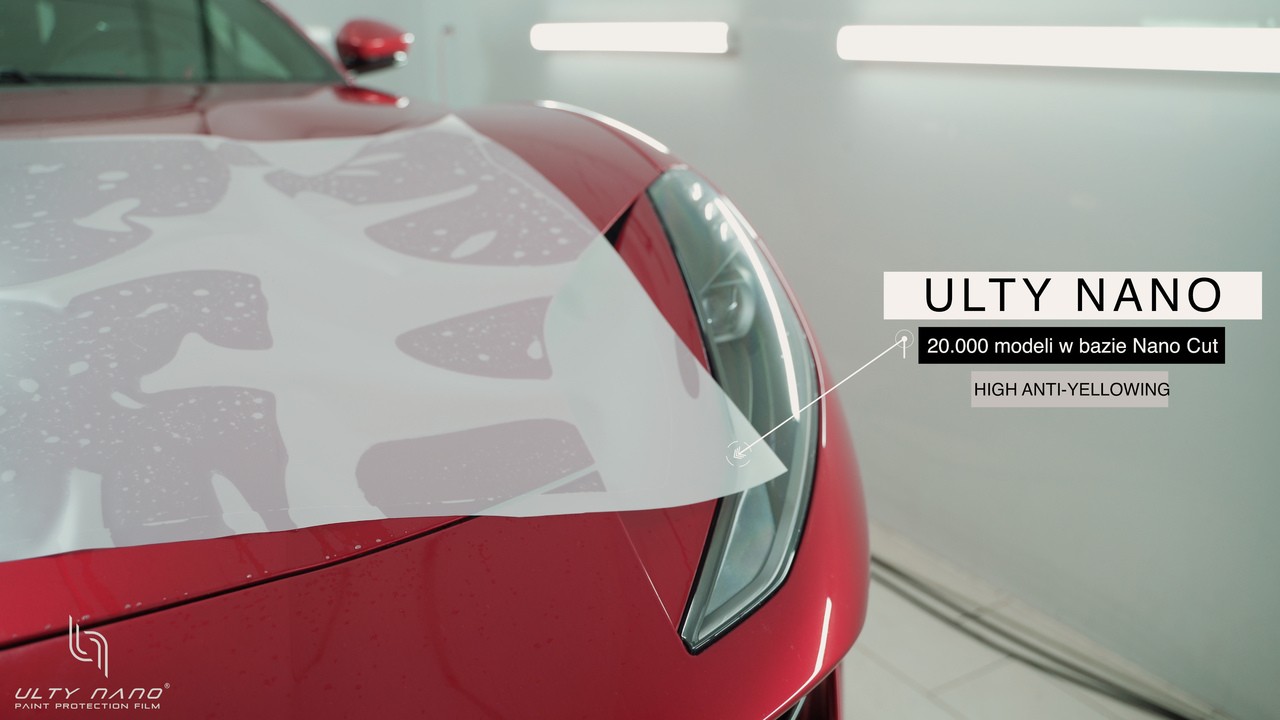W tym roku na rynku pojawił się materiał jakiego jeszcze w Polsce nie było. Mowa tutaj o folii PPF Ulty NANO, która występuje w trzech wariantach grubości: 175, 254 i 304 mikrony. Co istotne, dzięki dużej zawartości elastomerów już najcieńsza z wymienionych warstw zapewnia doskonałe właściwości regeneracyjne. Co istotne, proces samo-zasklepiania się folii zachodzi w temperaturze pokojowej, zatem zbędne są podgrzewacze i opalarki, tak jak to ma miejsce przy dotychczasowych materiałach. Z kolei prawdziwą rewolucją jest najgrubsza opcja 304 mikrony, która cechuje się niezwykłą jak na tę grubość elastycznością i adhezją. Bez najmniejszego problemu można nią wykończyć rogi elementów bez wykonywania nacięć w celu rozprężenia. Ciekawą cechą jest to, że na początku siła przywierania do lakieru jest niska, zatem łatwo dany element folii ustawić na karoserii lub zrepozycjonować, natomiast po kilku godzinach jest ona bardzo silna, co pozwala na perfekcyjne wykończenie zaokrągleń czy krawędzi. Dzięki temu, wiele wymagających części pojazdu można okleić przy wykorzystaniu jednego kawałka bez potrzeby nakładania tzw. „wstawek”.