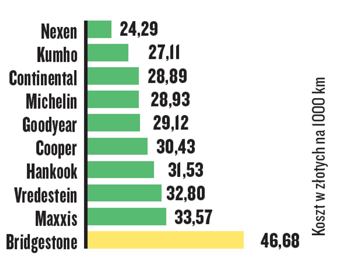 17/20 Test opon całorocznych — koszt pokonania 1000 km Nie zawsze najtańsze opony są najbardziej opłacalnym zakupem – na dłuższą metę drogie Continentale mogą opłacać się bardziej niż tanie opony marki Maxxis. Dla poszukiwaczy oszczędności: Nexen i Kumho.