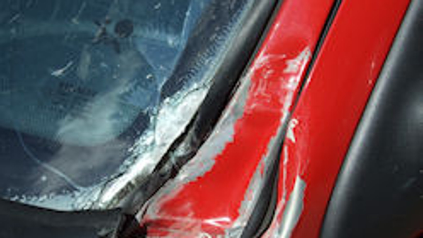 Uszkodzony jest mocno słupek przedni. Widać, że uderzenie było potężne.