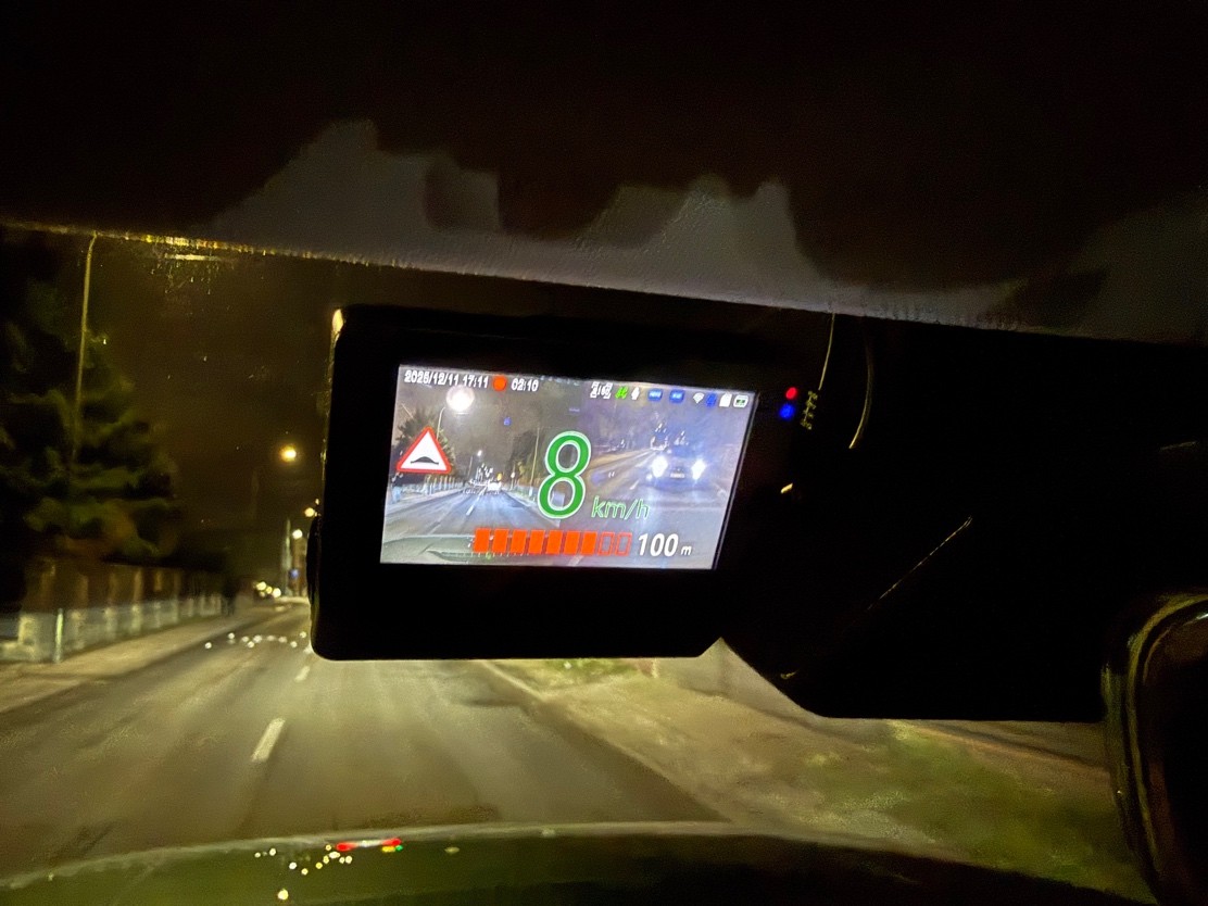 Przednia kamerka rejestruje prędkość jazdy (to właśnie przydatna rzecz w razie dyskusji z policjantem), ale także potrafi ostrzegać przed fotoradarami, przed niebezpiecznym zbliżaniem się do innego auta, może informować, że samochód stojący przed nami właśnie ruszył. Ostrzega głosowo (po polsku) o najechaniu na białe linie, a nawet o zbliżaniu się do niektórych śpiących policjantów. Czasem rozpoznaje pieszych przed samochodem w sumie dokładnie tak, jak to robią nowoczesne samochody. Oczywiście, te funkcje nie zawsze działają idealnie, nawet jeśli są fabrycznym wyposażeniem samochodu.