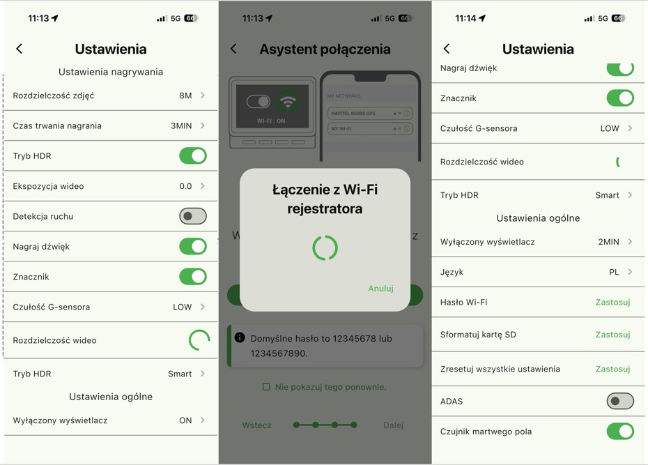 Ale nie jest tak, że trzeba ciągle łączyć się z kamerą — jeśli chodzi o mnie, to po jednorazowym ustawieniu wszystkiego nie zamierzam się tym więcej zajmować: kamery włączają się same po każdorazowym uruchomieniu samochodu i potem same się wyłączają.