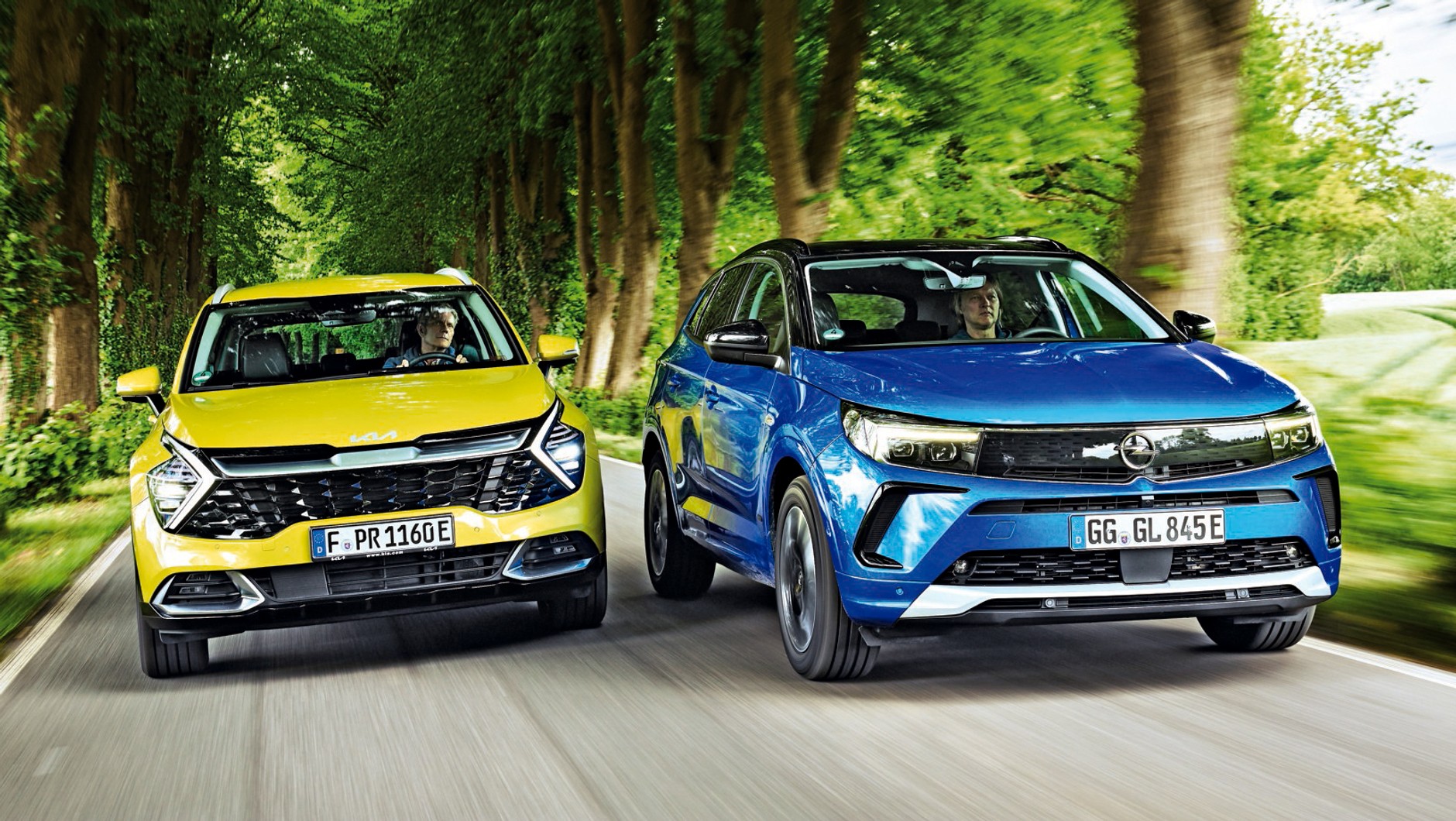 Zestrojenie zawieszenia Opla, niestety, nie należy do udanych. Na pofalowanej jezdni bujanie potrafi przyprawić o zawroty głowy, jednocześnie połatane asfalty powodują nieprzyjemne wstrząsy. O tym, że Opel woli spokojne traktowanie, świadczy też bardzo lekko pracujący i dający sztuczne odczucia układ kierowniczy. W Kii opory w czasie skręcania są przyjemniejsze, ale informacje zwrotne wcale nie są tu klarowniejsze. Za to zawieszenie udało się Kii lepiej niż Oplowi: Sportage resoruje pewniej i spokojniej niż Grandland.