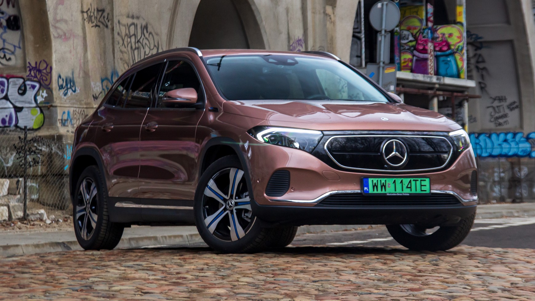 To stylistyka, która może się podobać. Jest nowoczesna i zwraca na siebie uwagę. Zmienione elementy wyglądają, jakby od początku miały tam być i powodują, że EQA po prostu jest świeże i przyjemne dla oka, szczególnie w tym lakierze przypominającym różowe złoto.