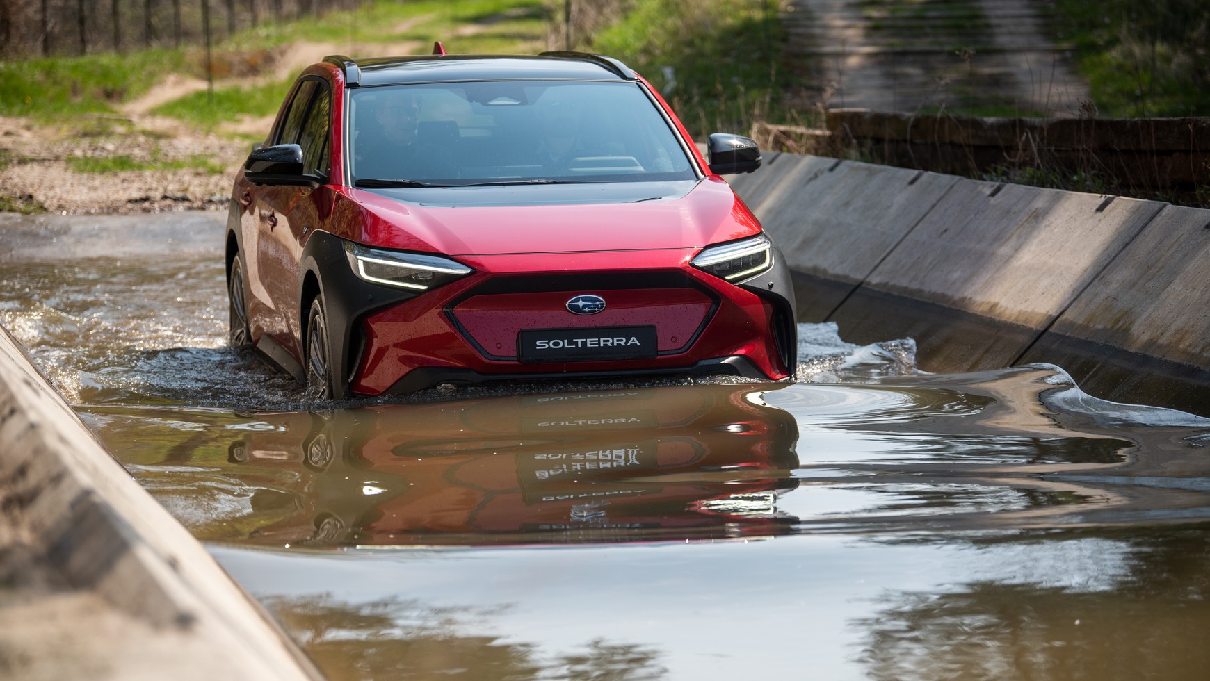 Wiedząc, że auta elektryczne mają wysoką masę, obawialiśmy się, że ważąca ponad 2 tony Solterra będzie prowadzić się ociężale. Tymczasem na torze w Modlinie, gdzie instruktorzy ustawili kilka prób składających się ze slalomu i testu łosia, zachowanie elektrycznego Subaru miło nas zaskoczyło. Po pierwsze układ kierowniczy reagował błyskawicznie i z dużą precyzją, po drugie usztywnione nadwozie z nisko położonym środkiem ciężkości (akumulator znajduje się pod podłogą) tylko nieznacznie wychylało się, a podczas gwałtownej zmianie kierunku jazdy ciężko było wyprowadzić samochód z równowagi. Duże wrażenie zrobił nas ten model także podczas prób offroadowych. Podczas przejazdu po nierównościach za sprawą prześwitu wynoszącego 210 mm nie szorowaliśmy o ziemię podwoziem, na stromych zjazdach doceniliśmy skuteczność działania systemu X-Mode, na podjazdach niemały kąt rampowy (18,2 stopni). W związku z wysokonapięciowym akumulatorem (355,2 V) obawialiśmy się próby brodzenia, ale i tę przeszkodę Solterra pokonała bez trudu. W modelu tym wrażenie zrobiła na nas także długa lista systemów wspomagających kierowcę (Subaru Safety Sense). W szczególności układy: zapobiegania kolizjom na skrzyżowaniach, ostrzegania o ruchu poprzecznym podczas cofania oraz asystent bezpiecznego wysiadania.