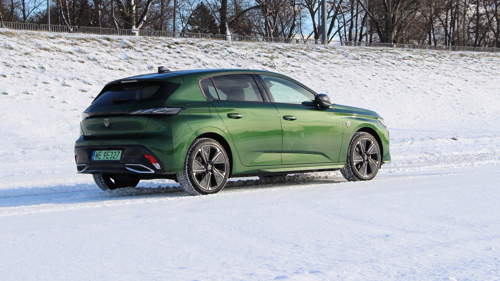 Elektryczny silnik generuje moc 115 kW (156 KM) i ma 270 Nm momentu obrotowego — to przeciętne wartości jak na auto kompaktowe. Oczywiście E-308 sprawnie przyspiesza — osiąga 0-100 km/h w niecałe 10 s — ale nie wgniata w fotel. Ma na to wpływ również dość duża masa własna wersji elektrycznej — blisko 1800 kg (o ok. 500 kg więcej niż w przypadku wersji 1.2 PureTech). Tyle jednak w zupełności wystarcza do sprawnej jazdy. Także w ruchu miejskim, gdy często przyspieszamy i zwalniamy.