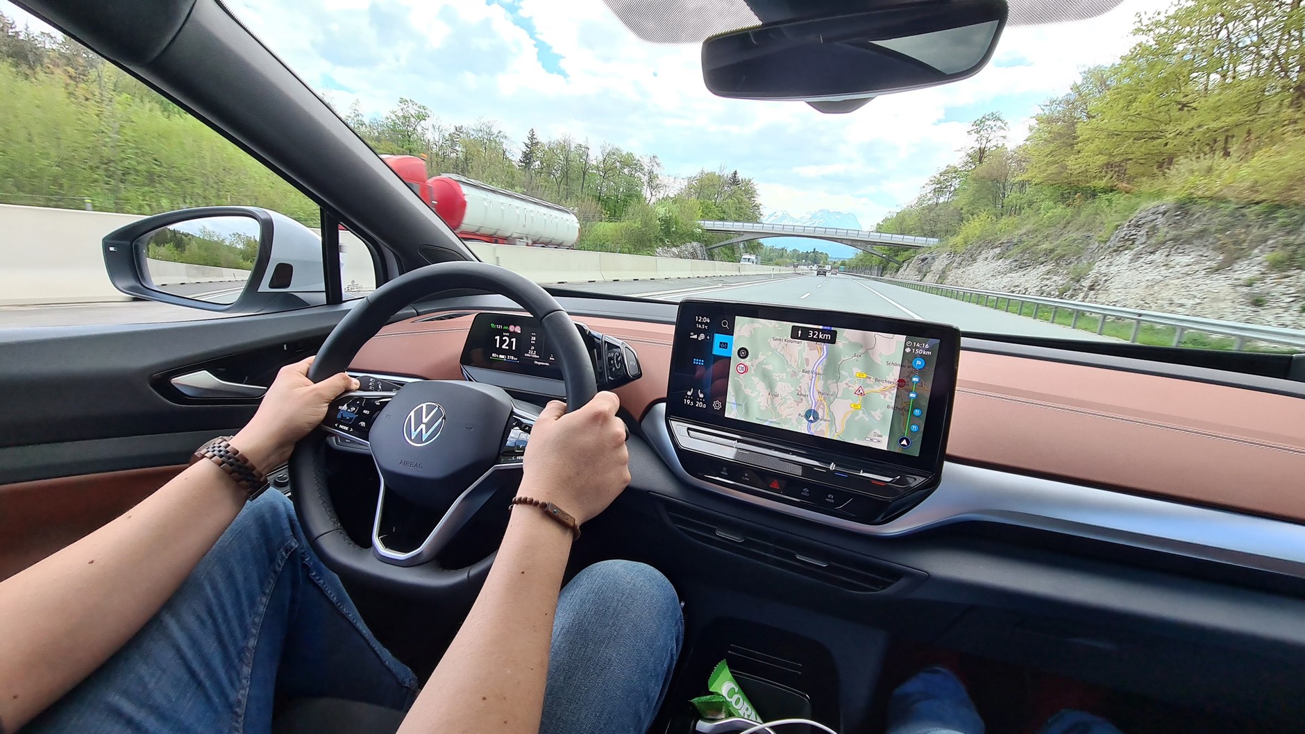 Volkswagen nie bez powodu chwali się sportowym zawieszeniem. Na krętych drogach u podnóża Alp ID.5 Pro Performance (napęd na tył i silnik o mocy 204 KM) i mocniejszy ID.5 GTX (napęd na wszystkie koła i 2 silniki o łącznej mocy 299 KM) pokazały pazur. Jakże łatwo o wrażenie zwinności i łatwości w prowadzeniu (odnoszę wrażenie, że osiągnięto także postęp w rekuperacji, a samochód nawet w trybie D sprawniej reaguje na odjęcie pedału gazu). Nie ma mowy o poczuciu ociężałości i prowadzenia czołgu jak w przypadku innych modeli. Znamienne, że udało się zachować wysoki komfort jazdy i to mimo ogromnych 21-calowych felg. Wprawdzie niedane nam było pokonać drogi rywalizującej z porządnym serem pod względem dziur, ale wszędzie tam, gdzie przydałaby się interwencja austriackich drogowców, było nadspodziewanie dobrze i łagodnie dla podróżujących.