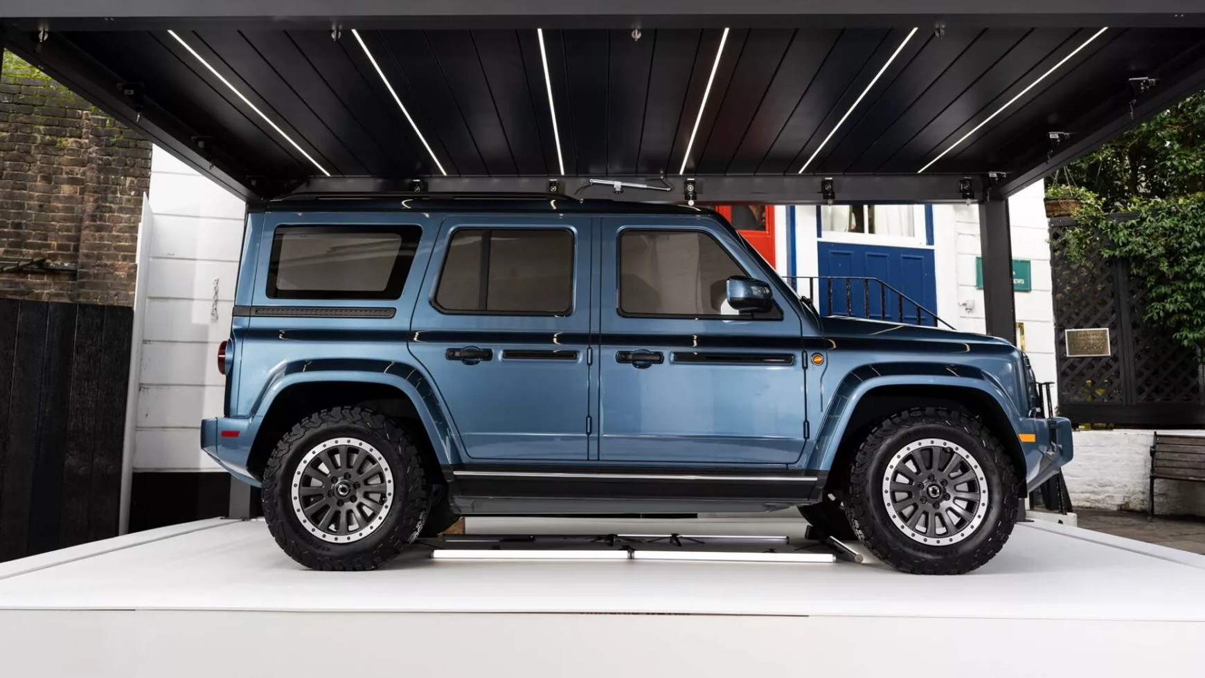 To zupełnie inna konstrukcja. Podobna sylwetka i znane nam zagrywki stylistyczne mogą być mylące – Ineos Fusilier jest odrębnym modelem, choć także zaprojektowanym we współpracy z austriackim zakładem Magna Steyr. Fizylier powstał na deskorolkowej platformie (nazwa wzięła się od kształtu płyty z akumulatorami), ma podwozie i nadwozie wykonane ze stali oraz aluminiowe drzwi.