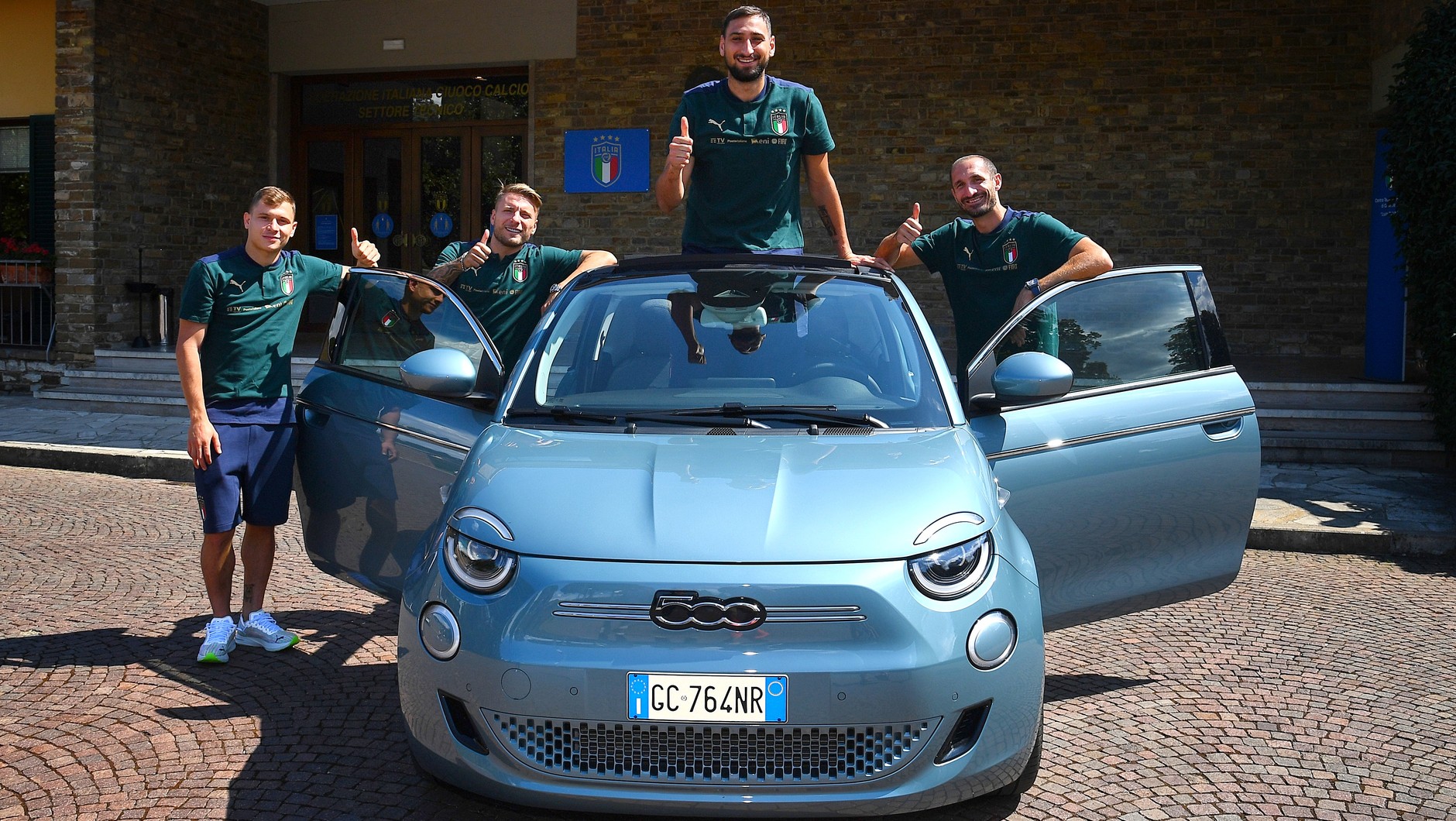Fiat od wielu lat jest sponsorem "Azzurri". Kontrakt sponsorki oznacza, że oficjalnym autem włoskiego związku piłki nożnej został najnowszy Fiat 500. Sesja z seniorską reprezentacją Włoch w piłce nożnej to jednocześnie okazja do pochwalanie się przez producenta, że nie tylko spalinowa rodzina "500" sprzedaje się świetnie w słoneczniej Italii. Nowa "pięćsetka" stała się już najczęściej kupowanym elektrykiem we Włoszech.