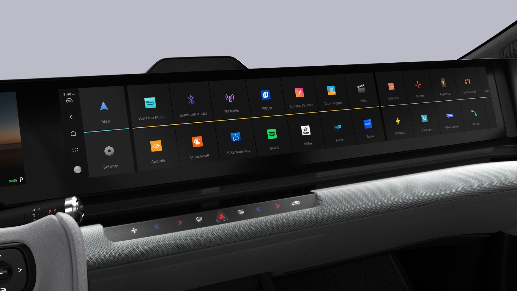 Przyjemność podczas jazdy zapewnią niecodzienny system dźwiękowy oraz szereg wyświetlaczy przed każdym siedzeniem. Za ich pomocą pasażerowie będą mogli korzystać z różnych aplikacji i treści rozrywkowych. Do tego dochodzi interaktywny osobisty agent, który umożliwia komunikację z pojazdem, a także opatentowany system redukcji szumów, którego zadaniem jest zapewnienie maksymalnej ciszy podczas jazdy. Model AFEELA 1 będzie można uaktualniać i wzbogacać o nowe funkcje za pomocą aktualizacji OTA (Over-the-Air). W USA samochody AFEELA 1 będą kompatybilne z siecią ładowania Tesla Supercharging. Zasięg auta ma wynosić 300 mil (ok. 480 km).
