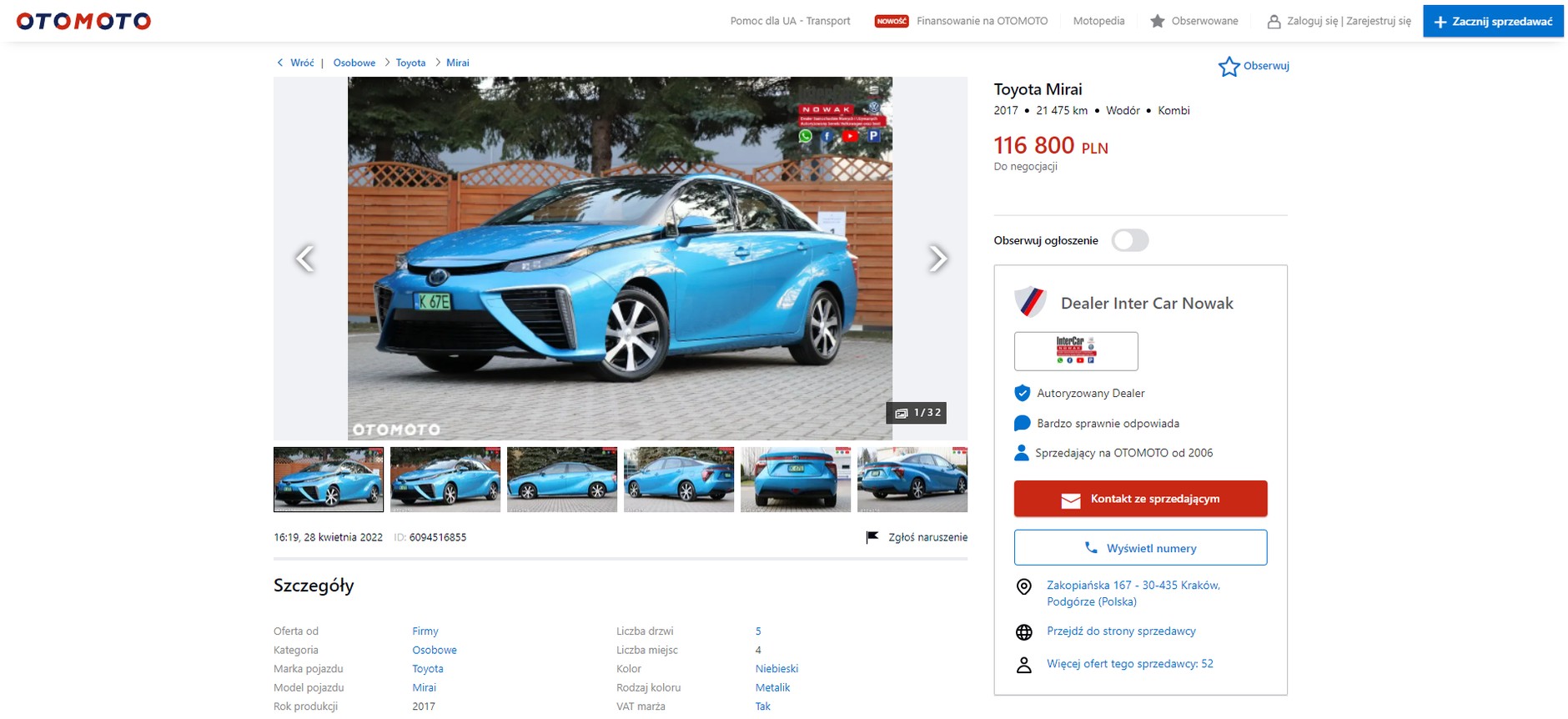 Jest jednak okazja, aby stać się właścicielem jednego z takich pojazdów. Krakowski dealer Toyoty, Inter Car Nowak, wystawił na sprzedaż dwa egzemplarze. Co prawda, na razie nie ma ich gdzie zatankować, ale Orlen buduje już pierwsze stacje (cztery mają powstać jeszcze w tym roku, a jedna z nich zlokalizowana będzie właśnie w Krakowie).