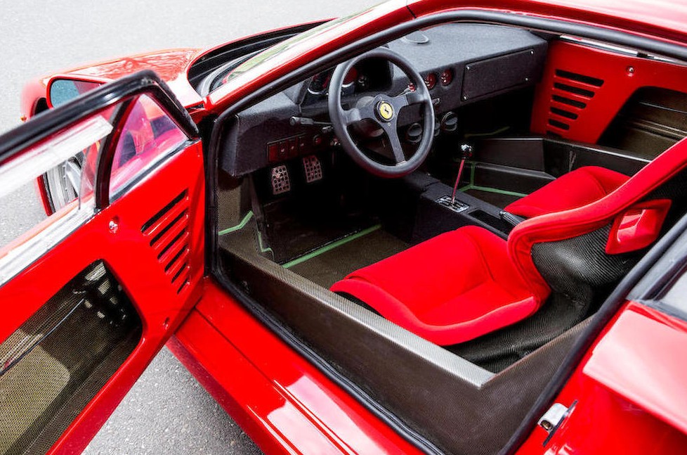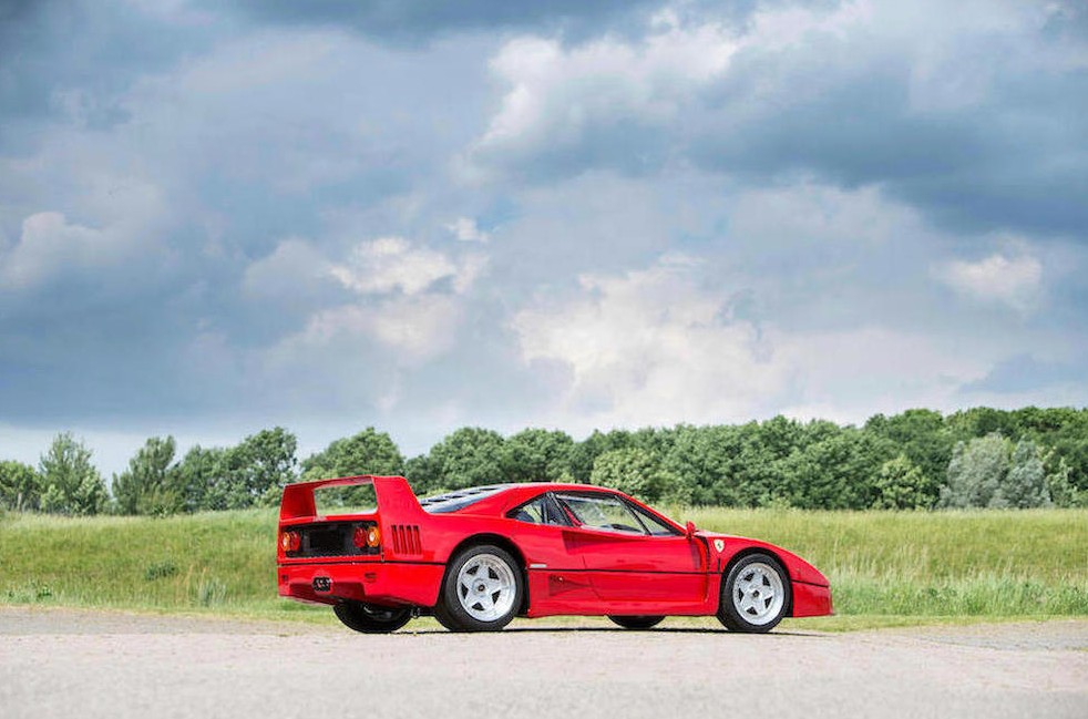 Ferrari F40 zadebiutowało w 1988 roku, by świętować 40-lecie działalności marki. To wersja rozwojowa pięknego 288 GTO. Za plecami kierowcy pracuje 3-litrowy silnik V8 z podwójnym turbodoładowaniem, który produkuje 478 KM. Z prędkością maksymalną 325 km/h Ferrari F40 zwyciężyło z Porsche 959 (314 km/h) i zostało w swoim czasie okrzyknięte najszybszym seryjnym samochodem świata. Więcej informacji znajdziecie na stronie domu akcyjnego Bonhams.