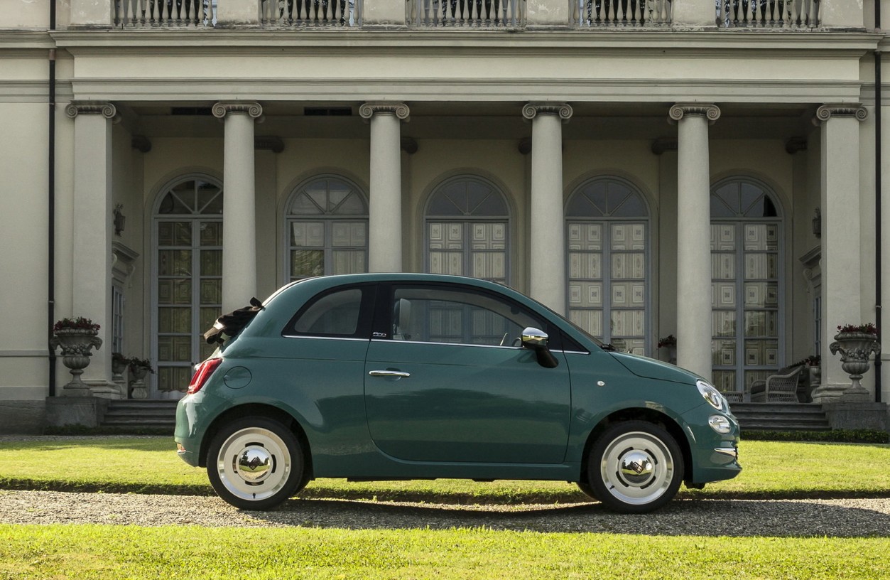 Fiat 500 Anniversario dostępny jako hatchback oraz cabrio w nowoczesnym stylu interpretuje historię modelu. Pojawiły się dwa nowe kolory, Sicilia Orange i Riviera Green, chromowane elementy na masce i lusterkach oraz logo Fiata i aluminiowe felgi w stylu vintage. Całość uzupełnia napis Anniversario z tyłu samochodu.