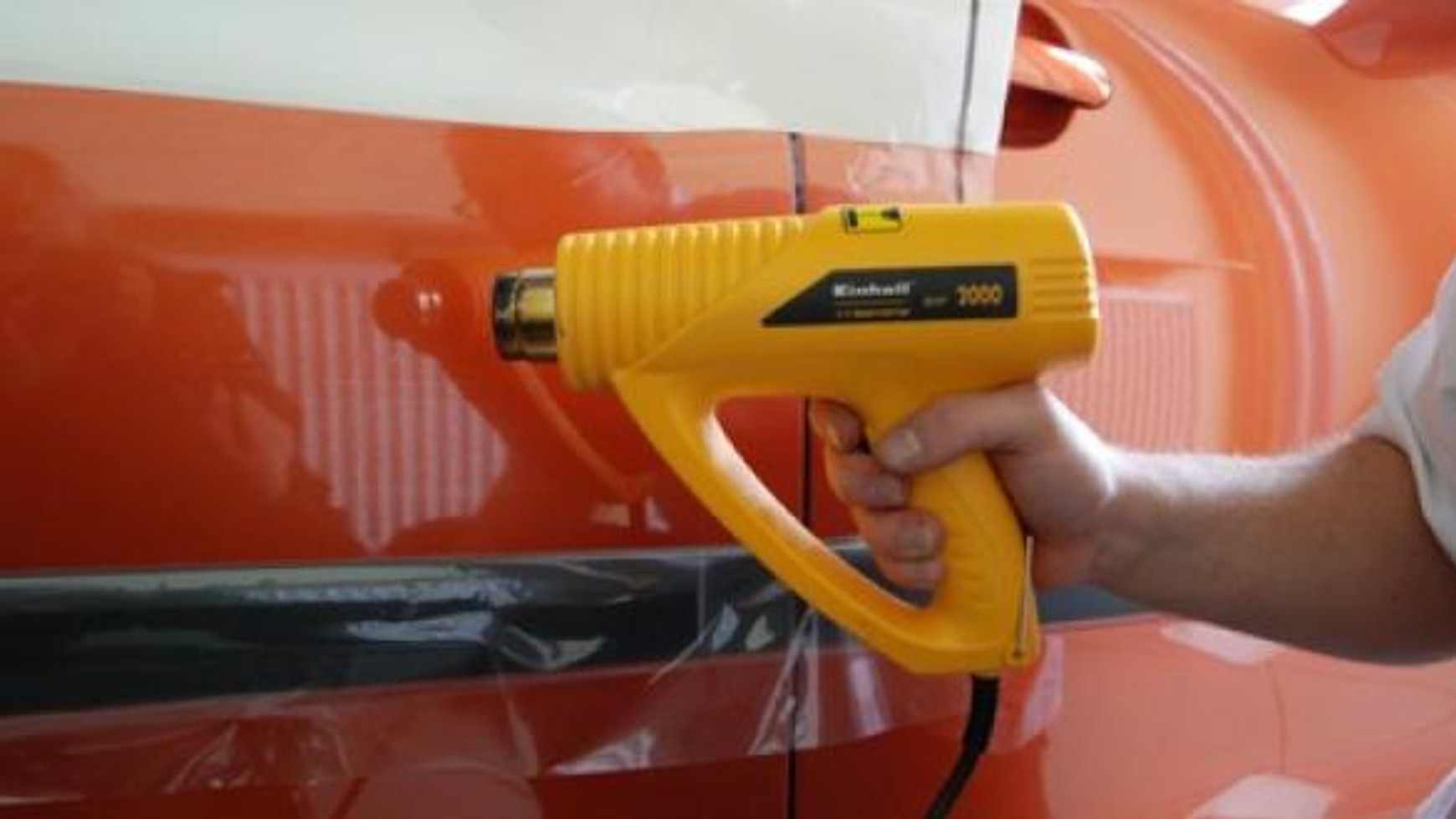 Podstawowa to folia sztywna przeznaczona do powierzchni płaskich. Nie sprawdza się najlepiej przy wypełnianiu głębokich przetłoczeń (np. pod klamką). Jej grubość wynosi od 0,07-0,10 mm. Do zalet z pewnością należy zaliczyć cenę (od 5 do 25 zł/m2) oraz odporność na rozerwanie, właśnie z powodu grubości. Ten typ folii jest stosunkowo łatwy w „obsłudze”, ale bez doświadczenia, cierpliwości i zdolności manualnych, efekt końcowy może odbiegać od oczekiwanego. Tą folię do oklejania samochodu stosuje się raczej do wyklejania reklam czy wzorów niż całkowitej zmiany koloru karoserii. Nakłada się ją na „mokro” i dociąga przy użyciu opalarki. Później przy użyciu tacek wygładza się powierzchnię.