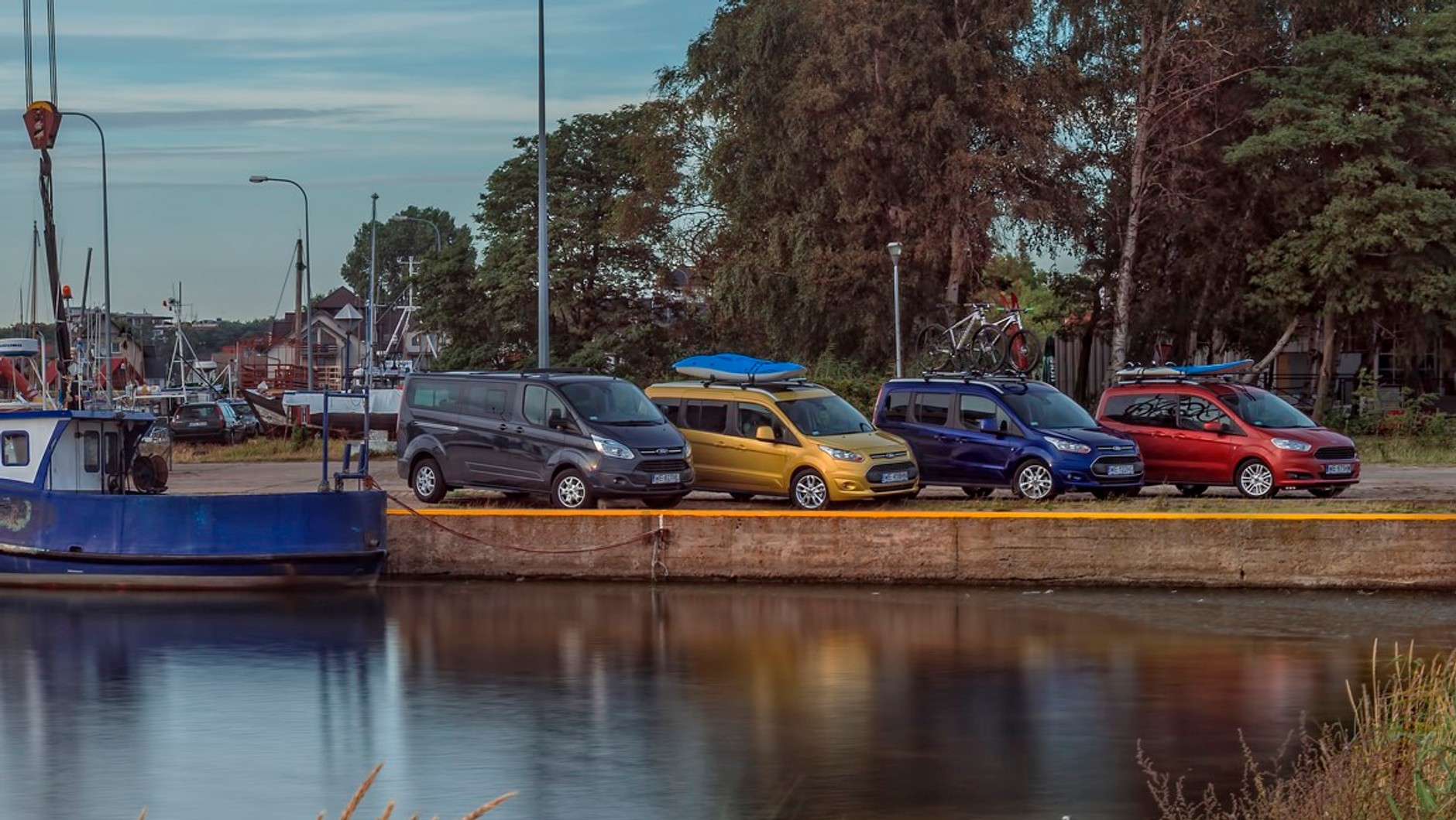 Najmniejszym modelem wśród prezentowanych samochodów jest Tourneo Courier. Nawet jeżeli z zewnątrz pojazd przywodzi stylistyką skojarzenia z modelem dostawczym, to takie posrtrzeganie auta zmienia się zaraz po zajęciu miejsca we wnętrzu. Pozycja za kierownicą okazuje się bardzo wygodna i bliżej jej do vana niż auta towarowego. Kierowca doceni również dobrą widoczność we wszystkich kierunkach oraz wygodne sięganie do dźwigni skrzyni biegów, którą umieszczono wysoko i blisko prowadzącego.
