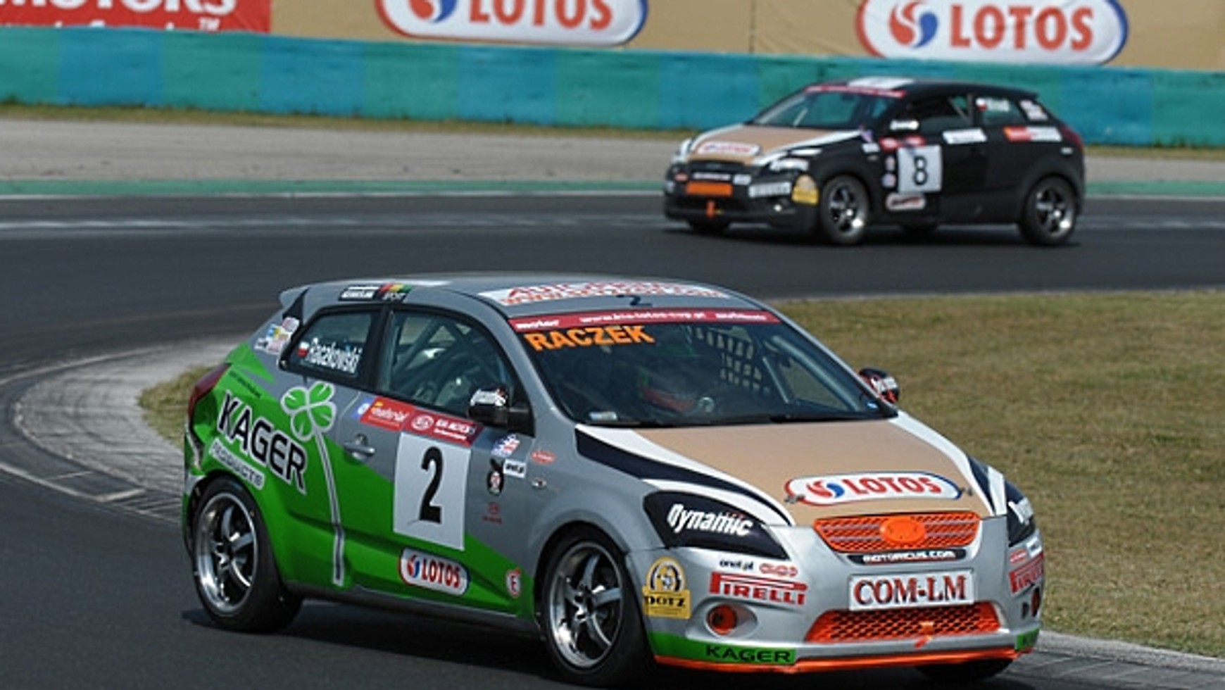 W obu biegach ta trójka nadawała tempo i dla fanów wyścigów urządziła wspaniałe, sportowe widowisko. Po starcie prowadzenie objął Łukasz Błaszkowski, ale niemal natychmiast zaatakował go Andrzej Gasenko. Kara przejazdu przez "depo" z falstart sprawiła, że nadzieja na zwycięstwo w pierwszej odsłonie cee’d LOTOS Cup się rozwiała, w drugiej części biegu najmłodszy uczestnik markowego serialu wyścigowego wspaniale walczył i udało mu się dojechać na czwartej pozycji. W zaciętej walce o pierwsze miejsce zwyciężył Kamil Raczkowski przed Łukaszem Błaszkowskim. Na trzecim miejscu finiszował Maciej Ostoja-Chyżyński. Drugi wyścig rozpoczął się od dużego zamieszania, w którym najbardziej ucierpiał samochód Marcina Przybyszewskiego - uszkodzona została przednia opona, natomiast Kamil Raczkowski po uderzeniu przez któregoś z konkurentów z trudem utrzymał się na torze tracąc jednak kilka miejsc. Na tym samym okrążeniu dachował Radosław Kordecki i na torze pojawił się samochód bezpieczeństwa. Cała stawka mogła więc ponownie zjechać się w jedną grupę i po kilku minutach rywalizacja została wznowiona.