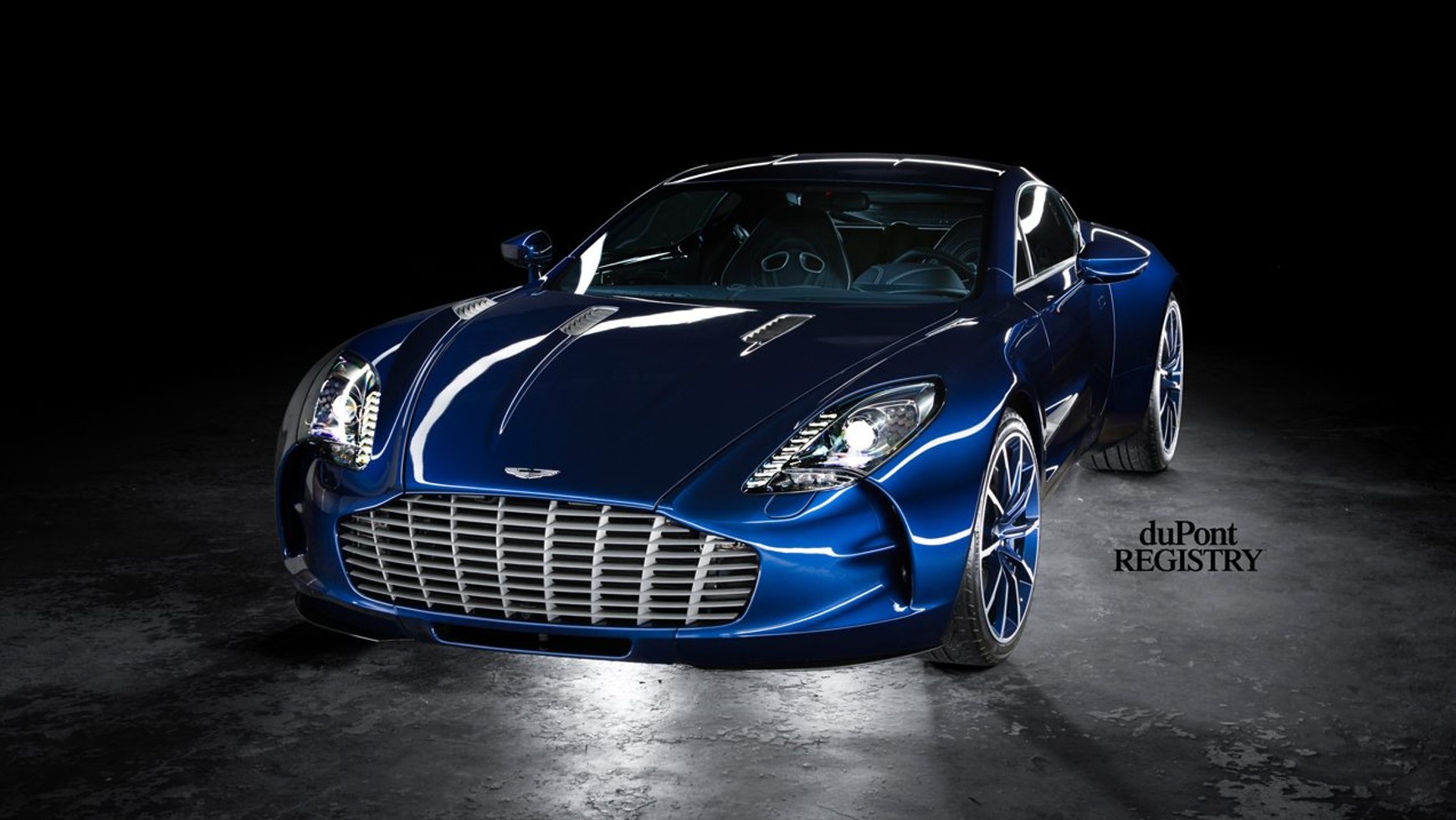 Aston Martin One-77 w wersji koncepcyjnej po raz pierwszy został zaprezentowany w 2008 podczas paryskiego salonu samochodowego. Niemal ukończona wersja właśnie w takim niebieskim kolorze została pokazana kilka miesięcy później na Genewa Motor Show, a oficjalny debiut drogowej odmiany odbył się nad jeziorem Como podczas Concorso d’Eleganza Ville d’Este w kwietniu 2009. Projektanci otrzymali nagrodę za najlepszy design i od tego momentu One-77 stał się motoryzacyjną ikoną piękności, jednocześnie pełniąc rolę najmocniejszego i najszybszego Astona w historii marki.