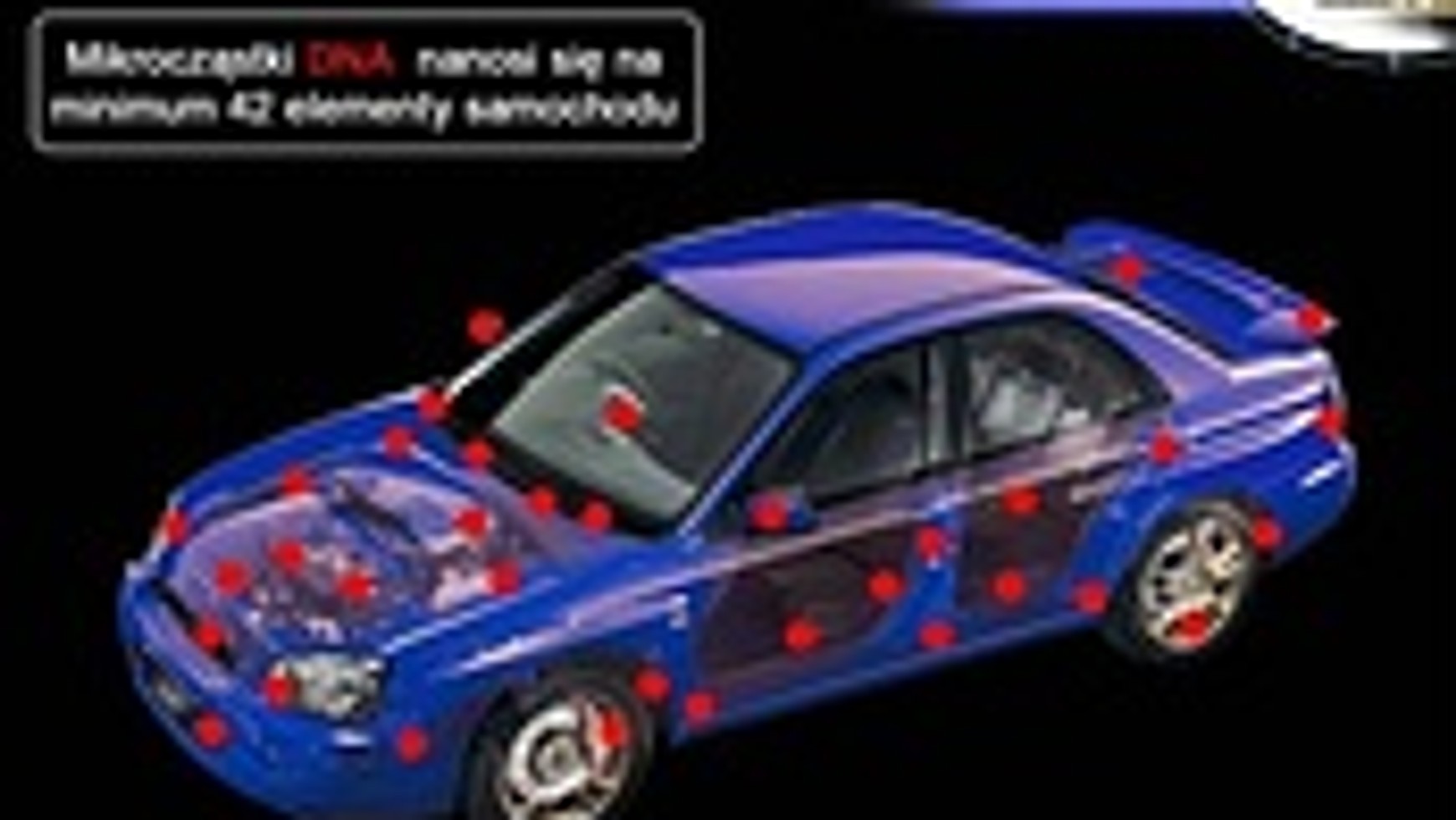 Znakowanie samochodów mikro-cząsteczkami robi ostatnimi czasy furorę w naszym kraju. Przyjrzyjmy się zatem z bliska tej technologii na przykładzie produktu firmy DNA Auto. Według jej właścicieli jest to rewolucyjny system zabezpieczenia pojazdu. Polega on na trwałym naniesieniu mikro-cząsteczek w wielkości od 5 do 20 tysięcy na różnych elementach samochodu, na których pojawią się unikatowe numery identyfikacyjne po którym można rozpoznać auto zapisane w bazie. Taki nadany kod genetyczny jest niepowtarzalny, a jego usunięcie czy też podrobienie jest jak najbardziej nieskuteczne.