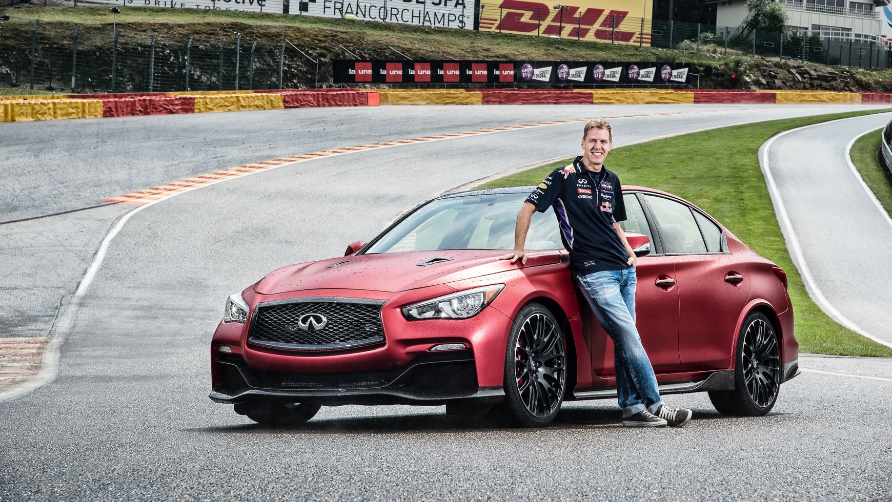 - Pomimo tego, że z powodu mokrego toru trudno było dokładnie sprawdzić osiągi samochodu, to zauważyłem, że zespół inżynierów udoskonalił układ kierowniczy i zawieszenie samochodu od czasu, kiedy jechałem nim po raz ostatni – powiedział Sebastian Vettel. – Z pewnością Q50 Eau Rouge nie brakuje mocy.