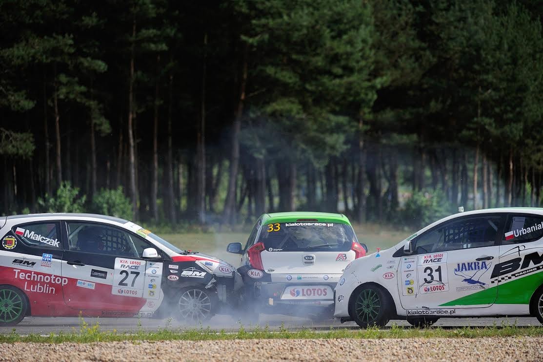 Tymczasem na Uśmiechu Szatana doszło do kolizji Piotra Belki z wyprzedzanym przez niego Maxem Zschuppe i niestety samochód Niemca pozostał uwięziony w pułapce żwirowej. I chociaż Łodzianin wrócił na tor i odrabiał stracone pozycje, to na trzy okrążenia przed końcem źle wszedł w ostatni zakręt przed prostą startową i z dużą prędkością wypadł z toru, rolując swoim Picanto w żwirze. Obeszło się bez konsekwencji dla zawodnika, ale auto będzie wymagało gruntownych napraw blacharskich.
