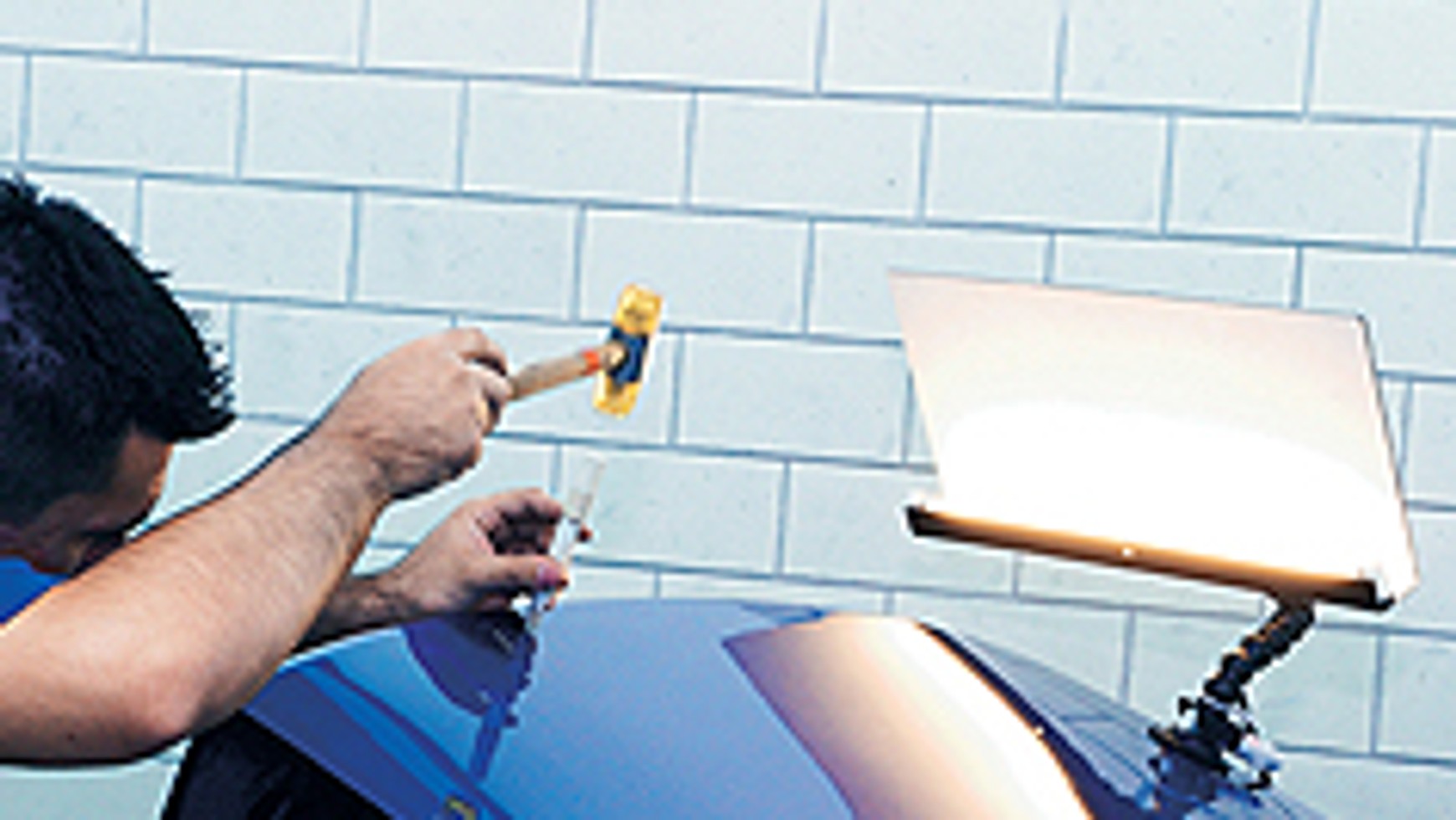 - Jeżeli lakier samochodu nie został zarysowany i nie pękł, a pod spodem nie ma grubej warstwy szpachli, warto rozważyć wyprostowanie uszkodzenia bez wizyty w tradycyjnym warsztacie blacharskim.Nie naprawia się w ten sposób uszkodzeń, które powstały tuż przy krawędzi elementu, np. maski. Z reguły bezpośrednio pod uszkodzeniem jest wzmocnienie, które uniemożliwia wypchnięcie metalu.Również wgniecenia na środku maski, jeśli znajdują się nad wzmocnieniem, wymagają interwencji blacharza, który naprawia je tradycyjnie.Aby naprawa była możliwa, z reguły trzeba zdemontować plastikoweosłony, boczki drzwi czy podsufitkę – w zależności od umiejscowienia wgnieceń. W wyjątkowych sytuacjach uszkodzenia da się wyciągnąć "na klej" bez demontażu jakichkolwiek elementów. Fachowcy tak kalkulują ceny swoich usług, aby były one tańsze niż tradycyjna naprawa, ale nie warto liczyć na to, że usunięcie pojedynczego wgniecenia będzie tańsze niż 150 zł. Jeśli uszkodzeń jest więcej, koszt usunięcia pojedynczego wgłębienia maleje, ponieważ duża część pracy polega na demontażu osłon, boczków i innych elementów tapicerskich.