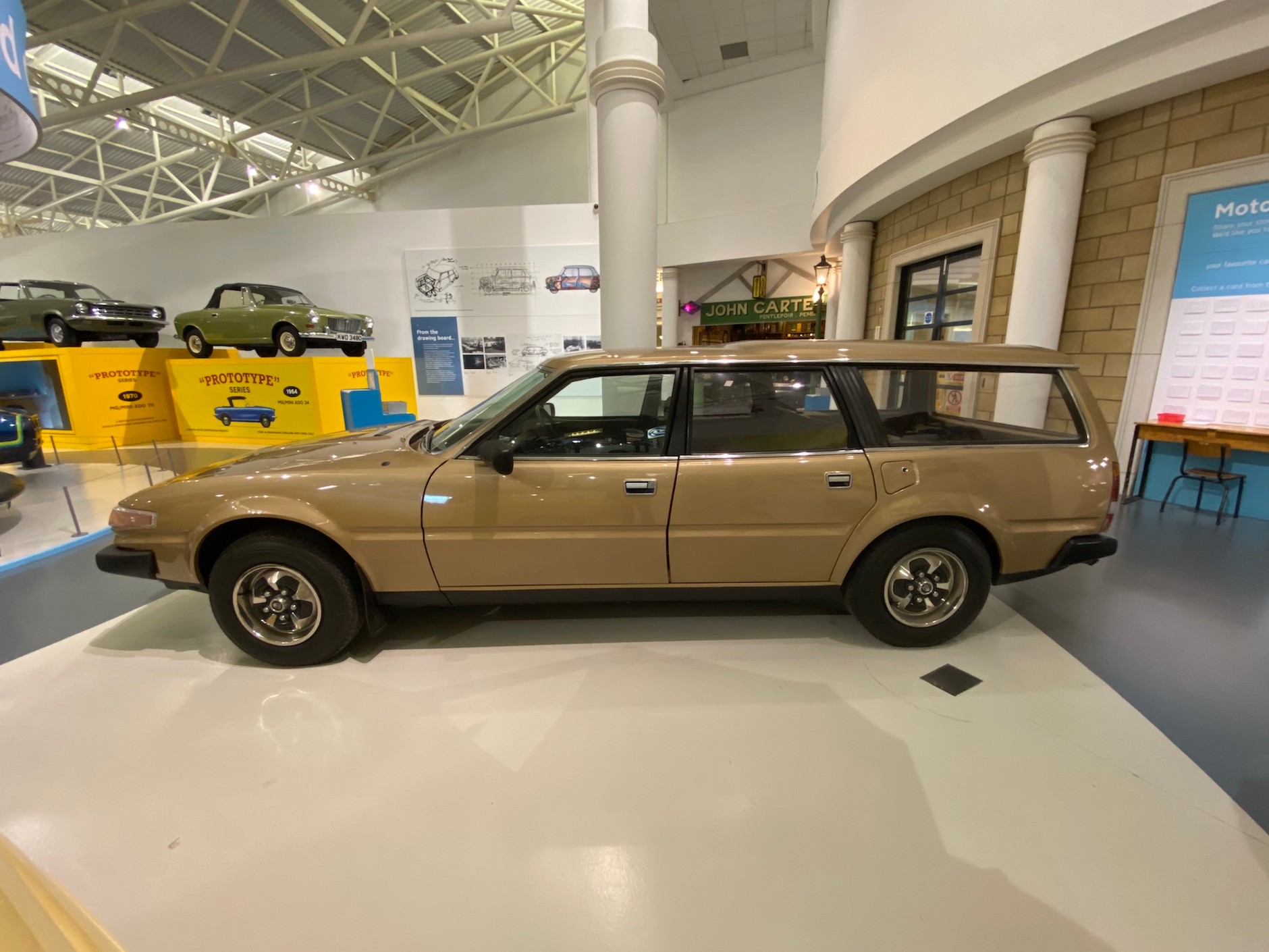W 1976 r. Rover wypuścił model SD1 – liftbacka klasy średniej wyższej o sportowej linii nadwozia. Auto zostało pozytywnie przyjęte przez rynek, dlatego w tym samym roku zlecono firmie Carbodies przygotowanie prototypu wersji kombi. Ford i Volvo oferowały w tym czasie już konkurencyjne modele, które cieszyły się dużą popularnością. Ostatecznie powstały dwa prototypy w fabryce w Solihull, każdy z innym tyłem. Jednym z nich jeździł nawet na co dzień prezes zarządu British Leyland, Sir Michael Edwardes. Mimo jego zaangażowania w ten projekt seryjna produkcja Rovera SD1 nigdy nie ruszyła. Prototyp widoczny na zdjęciach ma 3,5-litrowy silnik V8 o mocy 155 KM.