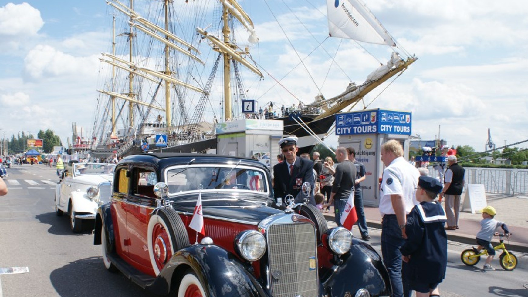 Mercedesy z żaglowcami w tle