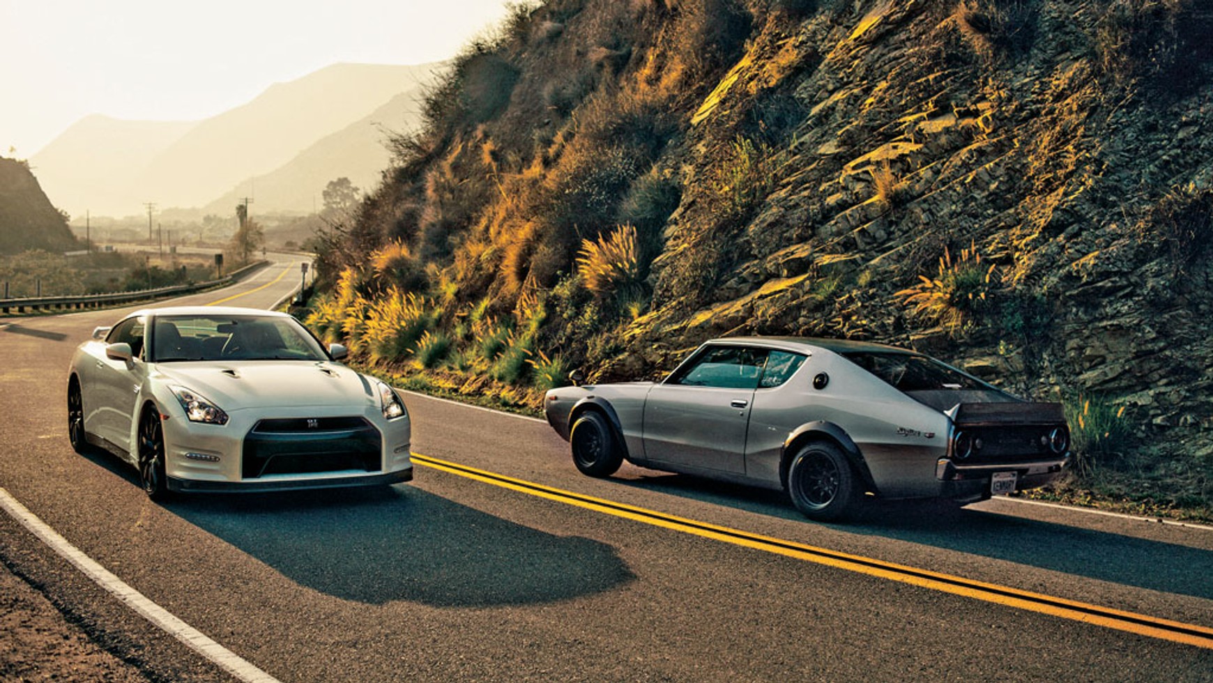 Do takich spotkań dochodzi naprawdę rzadko. Dwa coupé Nissana mkną górską drogą na szczyt i oba mają przydomek GT-R. Różnica między nimi wynosi ponad 40 lat, jednak geny mają te same. Tak jak nowszy model z silnikiem o mocy 550 KM działa dziś na nerwy kierowcom Porsche, tak i jego pradziadek prowokował konkurentów w latach 70. XX w. swym tylnym napędem i rzędową „szóstką”.