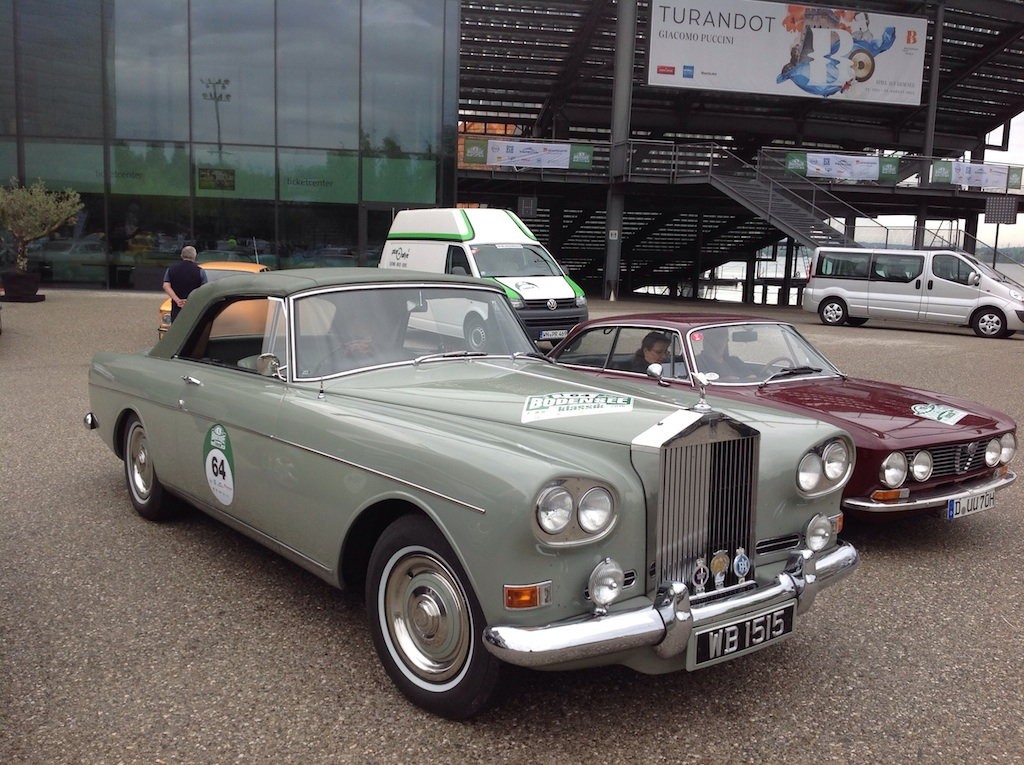 Nasza Skoda brała udział w rajdach długodystansowych o czym świadczą napisy na tylnej szybie. Tutaj parkujemy w przerwie między etapami na terenie Dornier Museum we Friedrichshafen