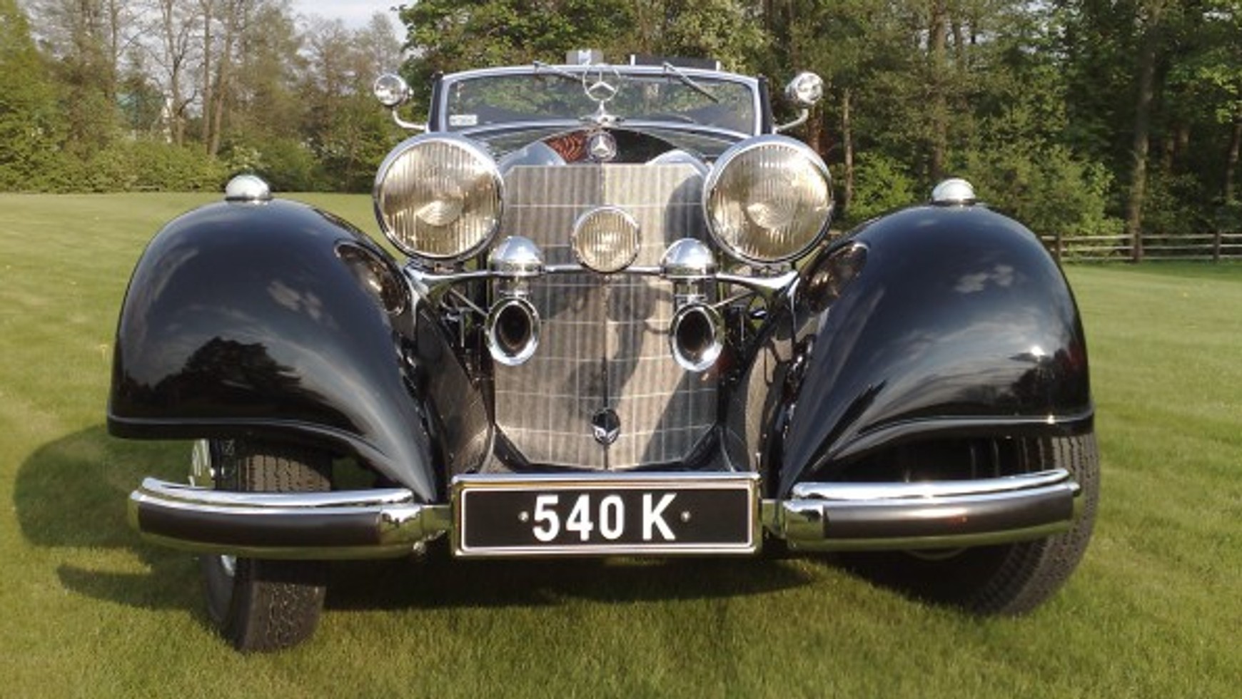 Mercedes 540 K cabrio A z 1937 roku. Jedyny taki egzemplarz w Polsce i jeden z kilkunastu wyprodukowanych przed II wojną światową. Kolekcjonerski biały kruk.