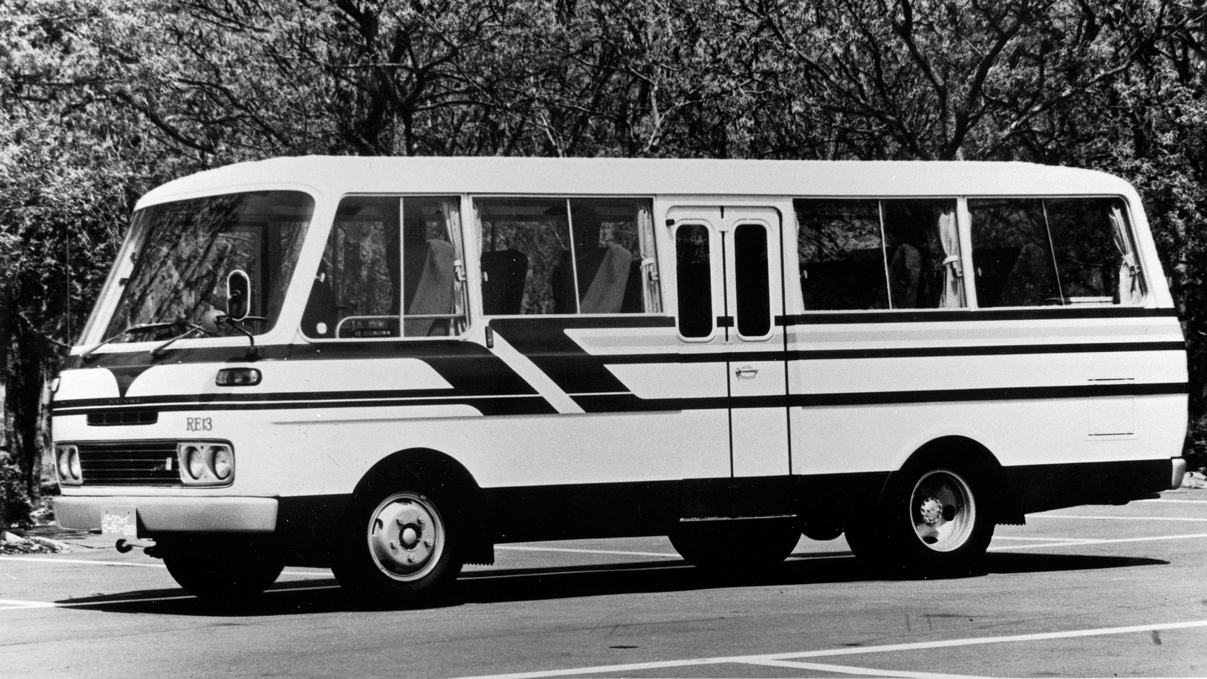 Pierwszy autobus Mazdy to pojazd bazujący na kompaktowej ciężarówce D1500 z 13 miejscami siedzącymi, dostarczony Japońskiej Agencji Obrony. Aranżacja wnętrza była dostosowana do celów wojskowych, np. ze złożonymi siedzeniami pojazd można było wykorzystać do transportu rannych żołnierzy na noszach, a na Bliskim Wschodzie wersja D1500 z dwuskrzydłowymi drzwiami z tyłu wykorzystywana była jako karetka pogotowia.