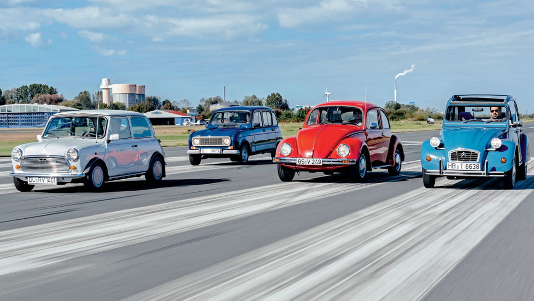 Mini, Renault „czwórka”, Citroën 2CV i VW Garbus są proste w konstrukcji i przystępne cenowo. Niegdyś zmotoryzowały niejedną nację, jednak im dłużej i wierniej służyły, tym mniej uwagi poświęcali im właściciele. Zebranie tego kwartetu dziś w takim stanie wcale nie było łatwe...