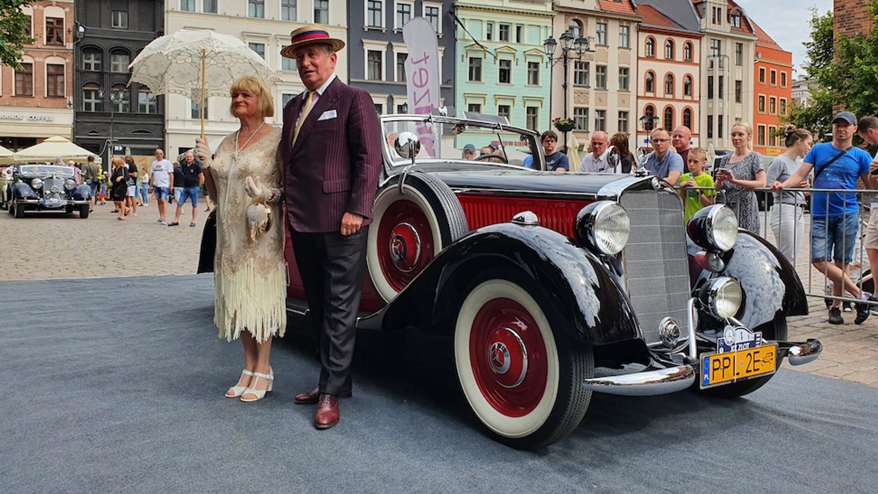 W tegorocznym toruńskim zlocie uczestniczyło sześć Mercedesów wyprodukowanych jeszcze przed II wojną światową. Mimo kilkudziesięciu lat "na karku" wszystkie prezentowały się znakomicie, ale przysłowiową wisienką na torcie, klasą samą w sobie był model 320 cabrio z 1938 r. Auto zostało profesjonalnie odrestaurowane, debiut miało w ub. roku. W latach 30. był to jeden z najdroższych Mercedesów w ofercie stuttgarckiej firmy i jedno z najdroższych aut oferowanych wówczas na rynku.