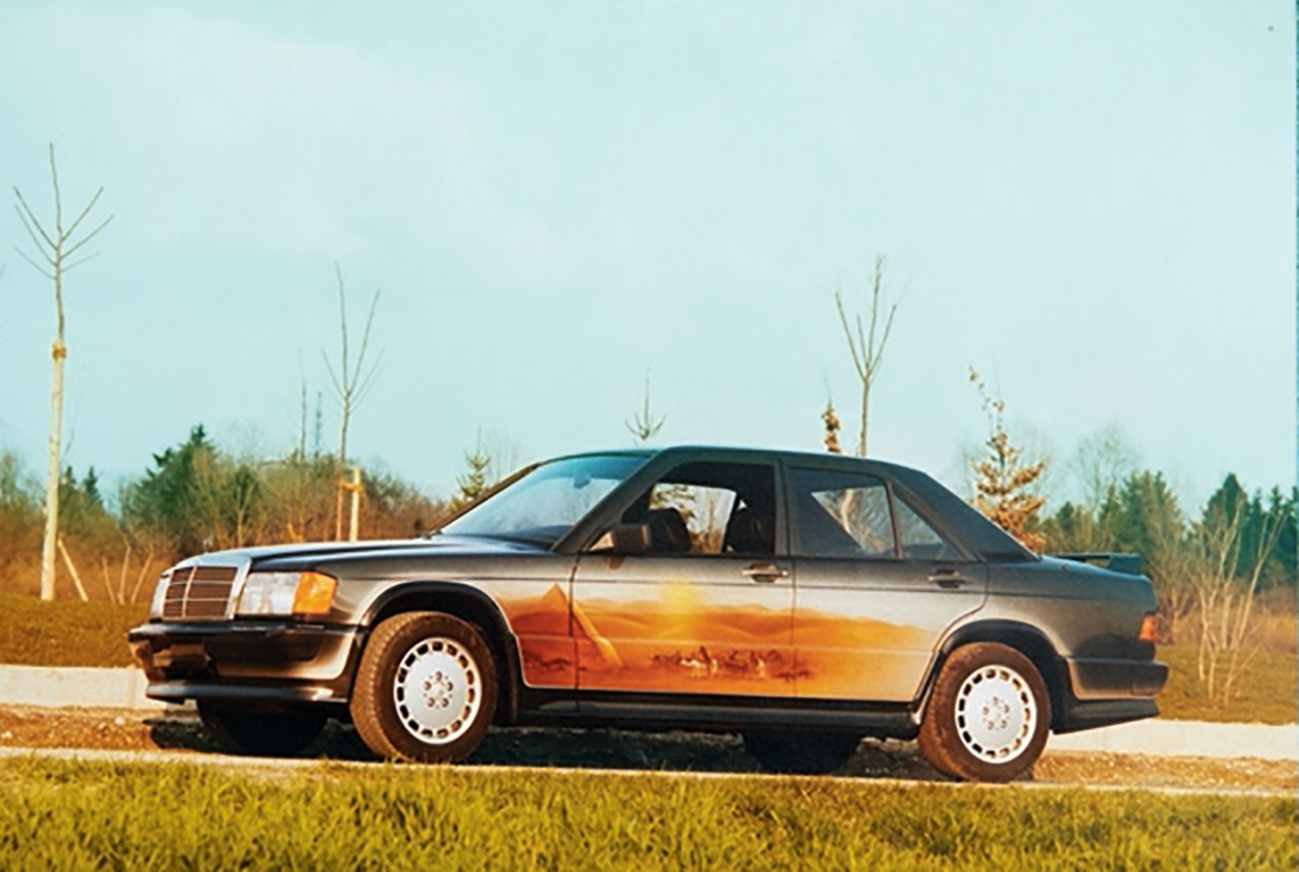 Styl lat 80. Tylne skrzydło wykonano z włókna szklanego. Na błotniku widać uszkodzenia zrobione przez wandali.