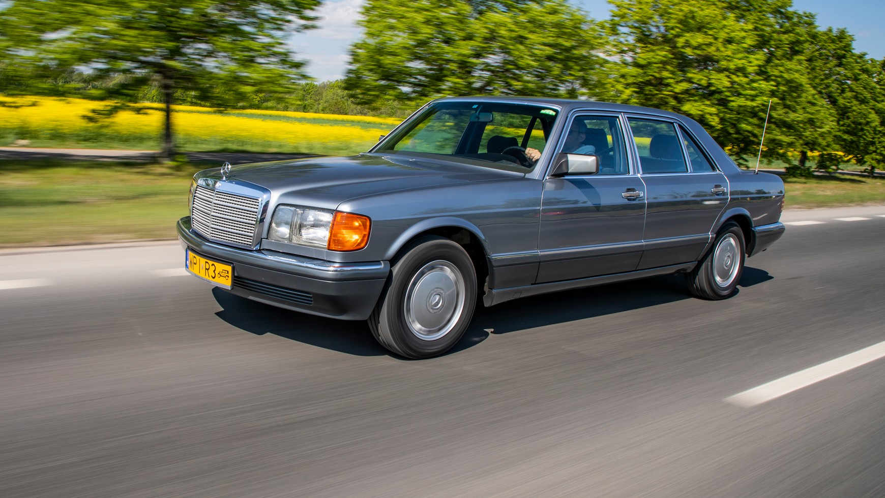Prezentowana wersja 420 SEL z najmniejszym silnikiem V8 w poliftingowej palecie bardzo dobrze radzi sobie z napędzaniem ważącej 1660 kg przedłużonej limuzyny. W sprincie do „setki” auto jest zaledwie o 1,1 s wolniejsze od najmocniejszej, wyposażonej w katalizator „560-ki” (279 KM). Różnica w prędkości maksymalnej wynosi 22 km/h. Niewiele lepsze osiągi mocniejszej o 55 koni topowej odmiany są spowodowane większą o 170 kg masą pojazdu. W przypadku samochodów niejeżdżących na co dzień nie ma to wielkiego znaczenia, ale odbija się oczywiście na zużyciu paliwa – w „560-ce” jest większe o prawie 2 litry. Niezależnie od tego, czy „eska” jest krótka, czy długa, pod względem wybierania nierówności nie ma sobie równych. Miękkie, komfortowe zawieszenie ma też swoją drugą stronę – na szybciej pokonywanych łukach nadwozie wyraźnie się przechyla, ale kto chciałby jeździć 30-letnią limuzyną, mierzącą prawie 5,2 m długości, szybko po zakrętach?