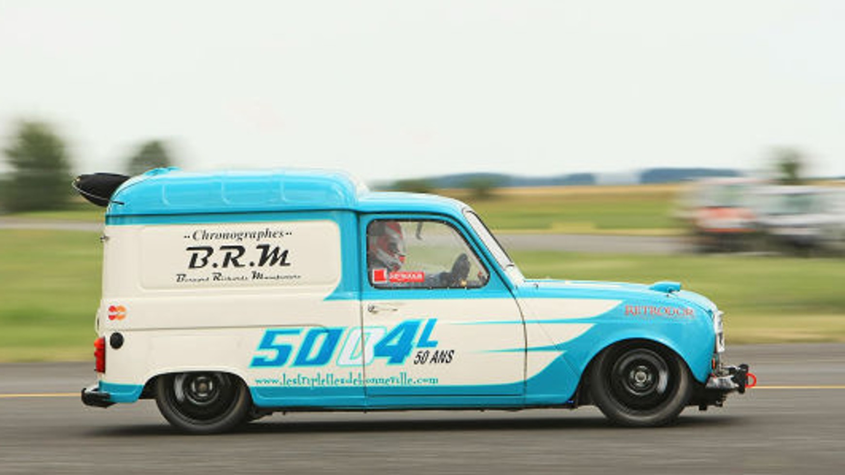 Maskownica została wykonana z aluminiowej kratki, która zaślepia teraz także przednie światła. Tylne nadkola są schowane do połowy pod karoserią w celu zmniejszenia oporów powietrza. Konstruktorzy tego potwora przyłożyli się, profil nadkoli posiada oryginalny kształt. Jako baza posłużyła krótsza wersja R4 zwana F4 z podwyższonym dachem (jej dłuższy odpowiednik posiada oznaczenie F6).Renault z seryjną jednostką 1.1 litra nie miałoby szans podczas wyścigów na słonym jeziorze w Utah. Silnik został przeszczepiony z jedynego właściwego modelu Renault R5 Turbo.