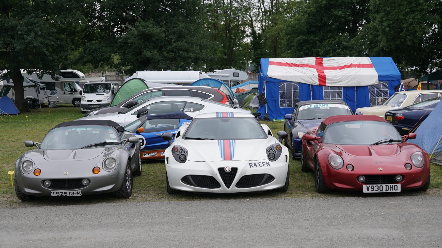 Ale na polach namiotowych okalających tor spotkacie nie tylko sportowe wozy, bo są też Logany i Zafiry. Niektórzy brytyjscy kibice idą jednak dużo dalej…