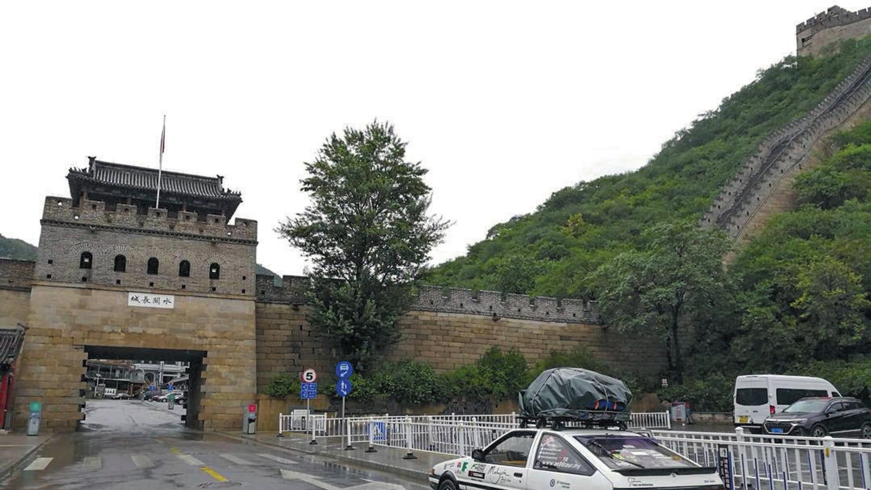 Przystanek Chiński Mur. Na bagażniku wszystko to, co nie zmieściło się w kufrze Toyoty