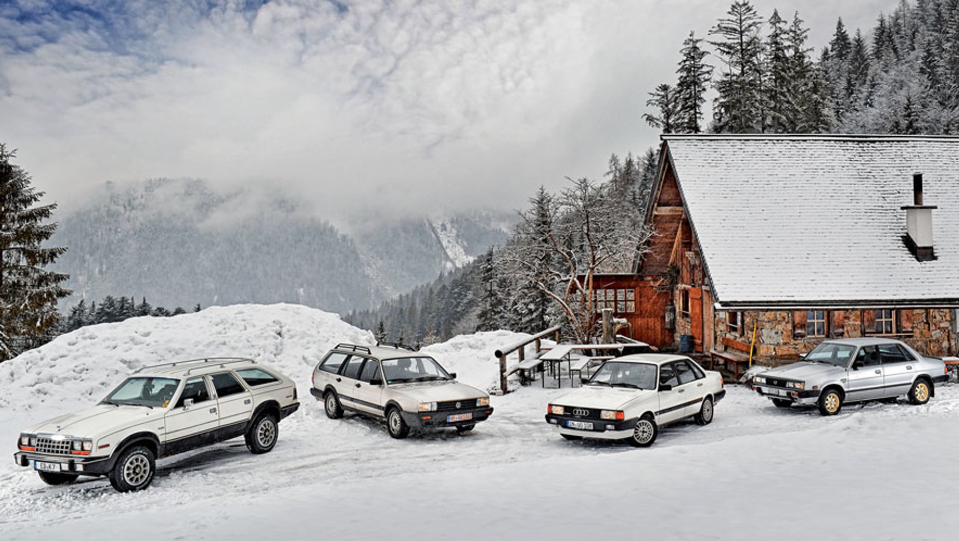 Nic więc dziwnego, że w górskich rejonach naszej planety właśnie takie auta można zobaczyć najczęściej. Subaru wprowadziło na rynek szwajcarski model 1800 w 1979 roku. W Stanach w tym samym roku AMC zaprezentowało Eagle, który początkowo miał permanentny napęd 4x4. Audi wkroczyło w 1980 roku z pierwszym Quattro, a dwa lata później – z Audi 80 Quattro.