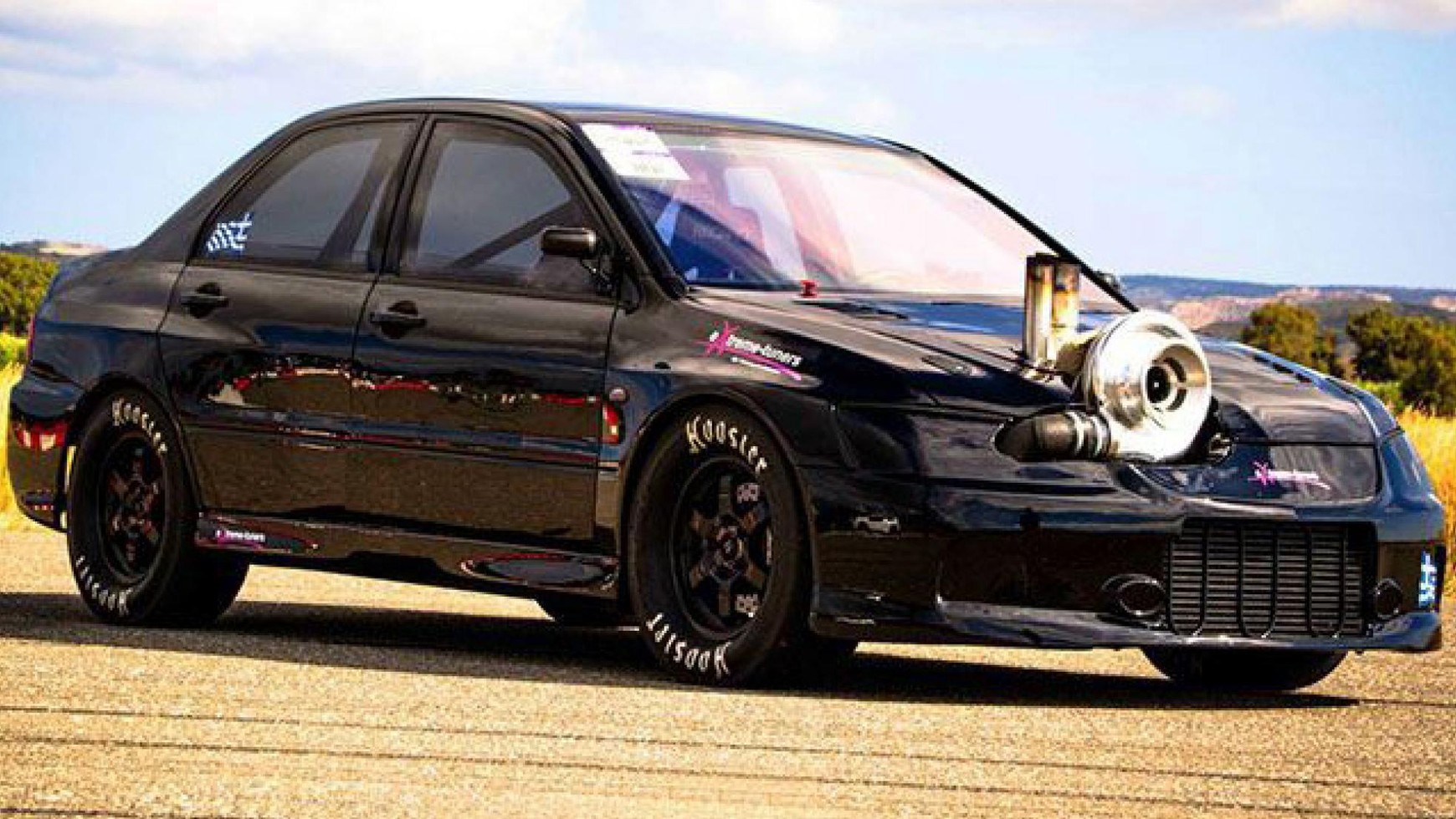 Choć Lancer Evo kojarzy nam się z rajdami, Tommi Makinenem i świetnymi właściwościami jezdnymi, tak do jazdy na wprost również ma w sobie potencjał. Pod maską opisywanego egzemplarza wymieniono silnik czterocylindrowy 2.0 turbo na mniejszy 1.8, ale z Turbo przez wielkie T. Średnica turbiny wynosi 91 mm, a jej rozmiar wymagał wycięcia dziury w masce. Można wręcz odnieść wrażenie, że do turbosprężarki przykręcono Lancera. Wyżyłowany motor kręci się do 13 000 obr/min. I rozwija 2100 KM!