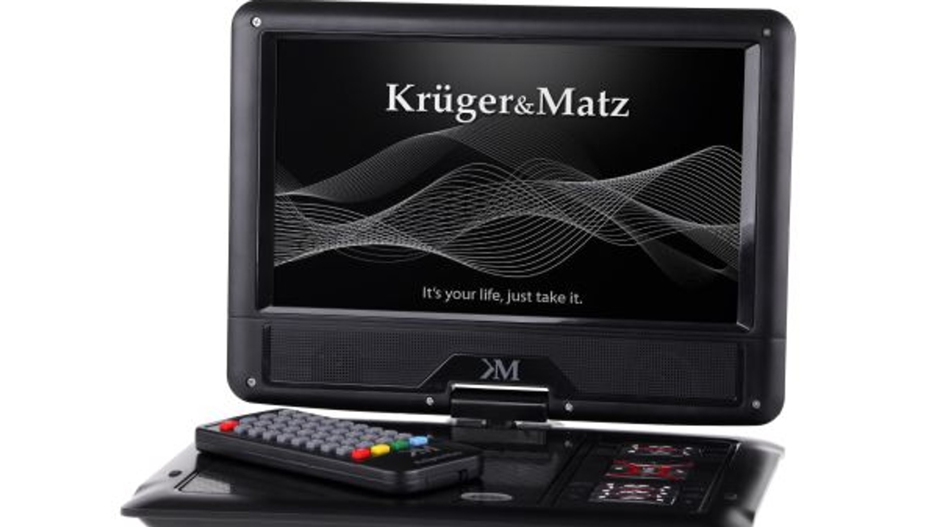 Wbudowany akumulator pozwala na korzystanie z urządzenia przez 2 godziny. Jednak dzięki dołączonemu do zestawu zasilaczowi samochodowemu sprzęt można ładować w trakcie jazdy, bez konieczności przerywania odtwarzanego programu. Przenośne DVD Krüger&Matz potrafi odtwarzać wiele rodzajów popularnych formatów np. DVD, MPEG-4, DVIX, CD, HDCD, CD-R, CD-RW Picture CD zapisanych na nośnikach DVD, CD, pamięciach USB oraz kartach SD i MMC. Do produktu dołączony jest pilot zdalnego sterowania.